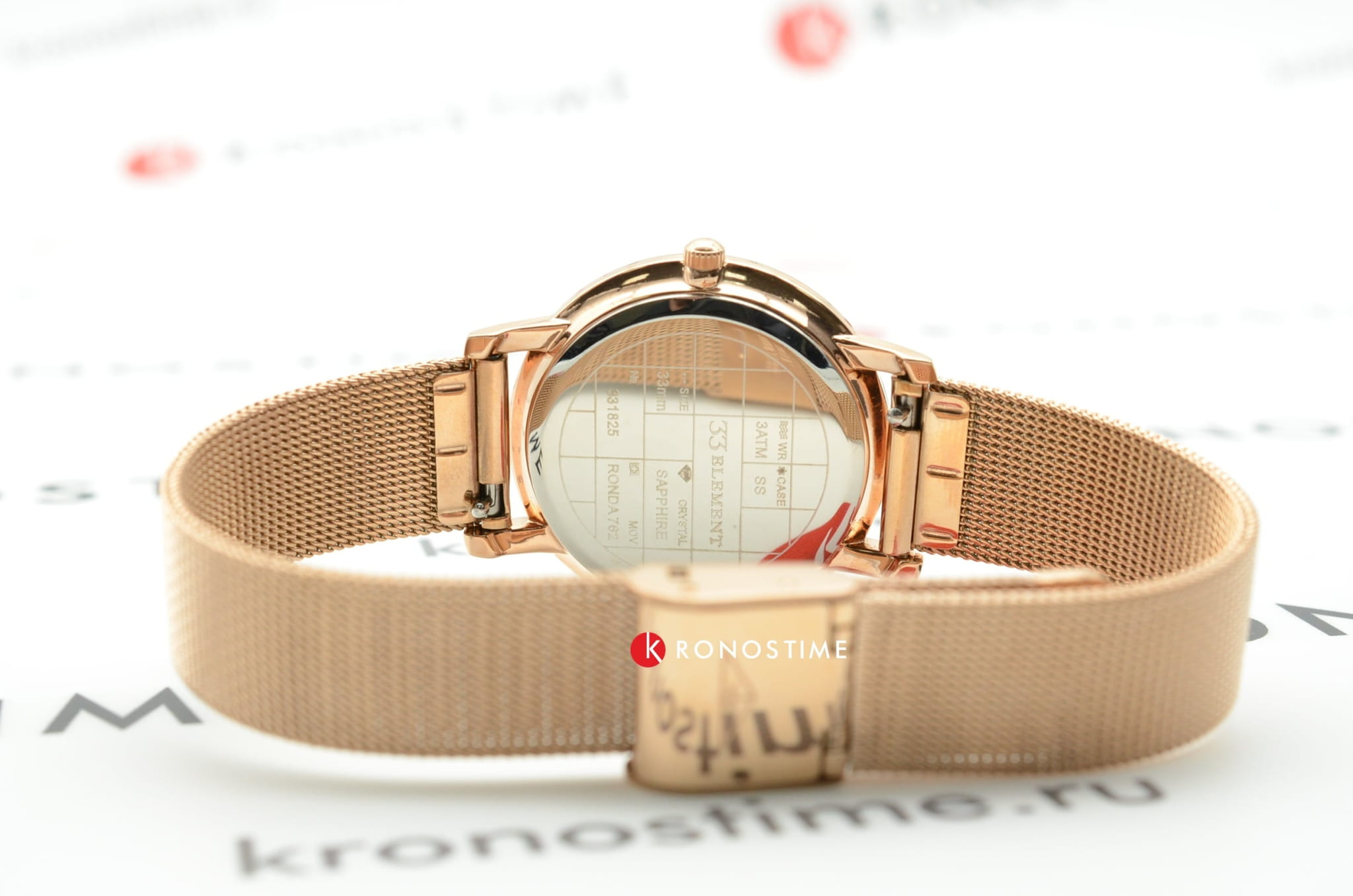 Женские наручные часы 33 Element 331825 отражают изысканную классику в модернизированном исполнении, прослеживается строгий минимализм. Число 33 в названии символизирует удачу и счастье. Стильный аксессуар станет идеальным вариантом для современной жительницы мегаполиса. Классические формы, сдержанная цветовая гамма, универсальный характер – модель гармонично сочетается с любой одеждой. Это отличный подарок для ценительницы изысканности и безупречной точности. Часы оснащены швейцарским механизмом Ronda. Имеют водозащиту от мелких брызг.