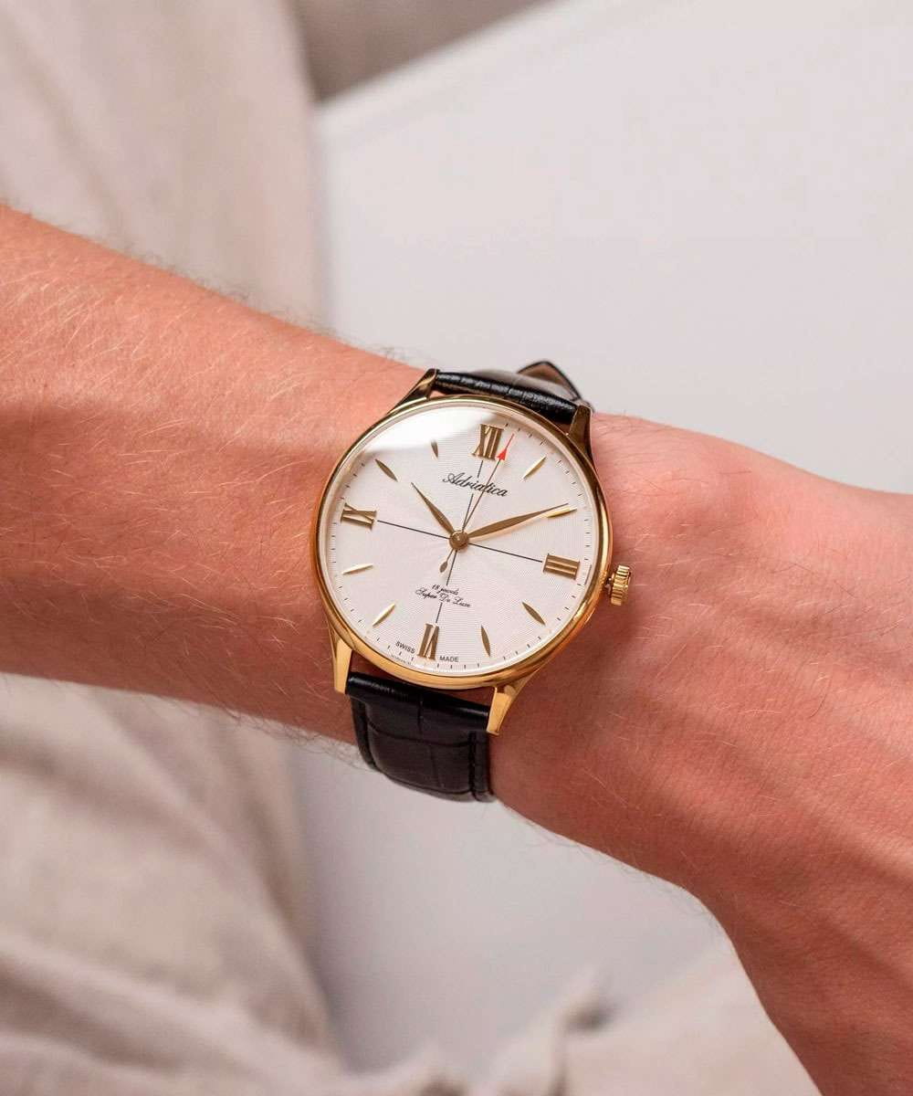 Часы Adriatica A1230.1263MXL представляют собой изысканное сочетание традиционного швейцарского мастерства и современного дизайна. Эти механические часы с калибром Sellita SW210 поражают точностью и надежностью, обеспечивая 42-часовой запас хода. Корпус из нержавеющей стали с PVDPVDУльтратонкое покрытие наносится в технике вакуумного напыления, сочетает в себе нитрид титана особой прочности со слоем золота или оксида хрома. Несёт в себе декоративную или защитную функцию. покрытием придает модели элегантный вид и защищает от внешних воздействий. Циферблат серебристого цвета с гильошированием завораживает своей текстурой, а римские цифры и штрихи добавляют классический акцент. Прозрачная задняя крышка позволяет любоваться сложной работой механизма. Кожаный ремешок с классической застежкой обеспечивает комфортное ношение и подчеркивает стильный внешний вид. Сапфировое стеклоСапфировое стеклоПрочный и надёжный материал из кристалла сапфира синтетического происхождения, характеризующийся особой твёрдостью и устойчивостью к царапинам и повреждениям. надежно защищает циферблат, а водозащита 30 WR делает эти часы практичным выбором для повседневного использования.  Adriatica A1230.1263MXL — это не просто аксессуар, а отражение утонченного вкуса и внимания к деталям, которое станет достойным дополнением к любому образу.