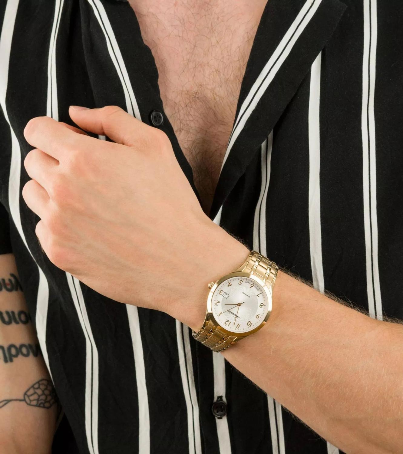 Швейцарские мужские наручные часы Adriatica Twin A1236.1123Q, кварцевый механизм с высокой точностью. Сапфировое стеклоСапфировое стеклоПрочный и надёжный материал из кристалла сапфира синтетического происхождения, характеризующийся особой твёрдостью и устойчивостью к царапинам и повреждениям. устойчивое к появлению царапин, обладающее высокой прозрачностью. Класс водозащиты: 50 метров, позволит защитить корпус от случайных брызг или капель дождя. Корпус часов изготовлен из стали с PVDPVDУльтратонкое покрытие наносится в технике вакуумного напыления, сочетает в себе нитрид титана особой прочности со слоем золота или оксида хрома. Несёт в себе декоративную или защитную функцию. покрытием. Часы оснащены оригинальным литым браслетом со съемными секциями, позволяющими регулировать длину. Циферблат окрашен в серебристый цвет, центр которого украшен гильошированным рисунком в виде дуг, расходящихся от центра до длинных позолоченных маркеров часа.