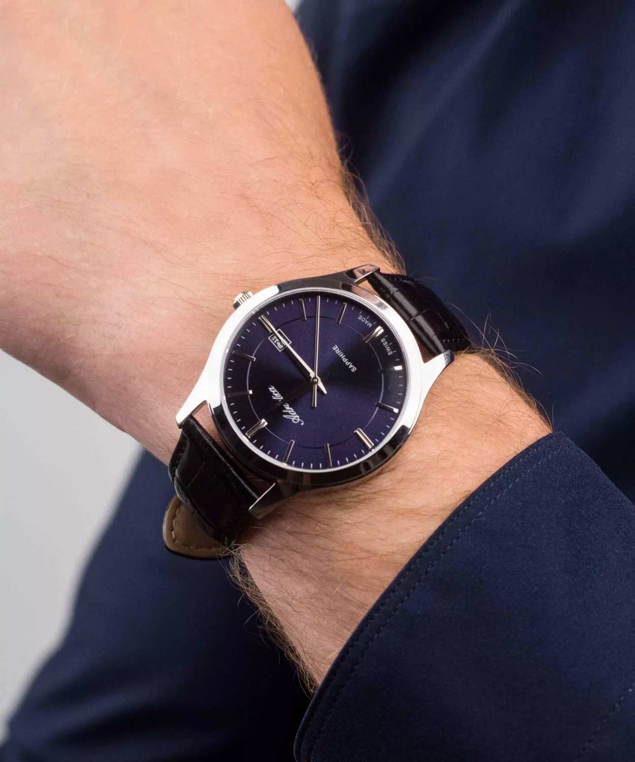 Часы Adriatica A1295.5215Q представляют собой образец швейцарского мастерства, сочетающего в себе стиль и надежность. Изящный корпус диаметром выполнен из нержавеющей стали, а сапфировое стеклоСапфировое стеклоПрочный и надёжный материал из кристалла сапфира синтетического происхождения, характеризующийся особой твёрдостью и устойчивостью к царапинам и повреждениям. надежно защищает синий циферблат от царапин. В основе часов лежит кварцевый механизм с калибром RONDA 515, обеспечивающий высокую точность хода. Водозащита на уровне WR 50 (5 ATM) позволяет использовать часы в различных условиях, защищая их от воздействия воды. Черный кожаный ремень обеспечивает комфортное ношение и подчеркивает элегантность модели. Часы также оснащены функцией отображения даты, что добавляет удобства в повседневной жизни. Вес модели составляет всего 46 г, что делает ее легкой и удобной для постоянного ношения. Эти часы – идеальный выбор для тех, кто ценит изысканный стиль и швейцарскую точность.