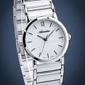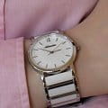 Часы Adriatica A3721.C15FQ воплощают в себе утонченную элегантность и надежность, идеально подходящие для современных женщин. Выполненные в Швейцарии, они оснащены высокоточным кварцевым механизмом с калибром RONDA 763, который обеспечивает безупречную точность хода. Корпус из нержавеющей стали диаметром 36 мм и толщиной 7 мм, что придаёт ему утончённый и современный вид. Белый перламутровый корпус защищает минеральное стеклоМинеральное стеклоМинеральное стекло представляет собой искусственно выращенный минерал кварца. Такое стекло отличается особой устойчивостью к повреждениям и царапинам. Уступает по некоторым качествам сапфировому стеклу., придающее часам изысканный вид, а водозащита 3 ATM гарантирует защиту от случайных брызг. Браслет из нержавеющей стали с белыми биокерамическимиБиокерамикаБиокерамика — это материал, который на две трети состоит из керамики, на одну треть — из биопластика. Он сочетает в себе лучшие качества обоих материалов и обладает прочностью и шелковистой на ощупь текстурой. вставками, обеспечивает комфорт и долговечность, а ювелирная застежка добавляет дополнительный штрих к утонченности дизайна. Часы весят всего 80 грамм, что делает их практически невесомыми на запястье, обеспечивая комфорт в течение всего дня. Эти часы станут идеальным дополнением к любому образу, подчеркивая индивидуальный стиль и вкус их обладательницы.