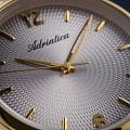 Женские часы Adriatica Essence A3790.1157Q имеют кварцевый механизм с высокой точностью. Минеральное стеклоМинеральное стеклоМинеральное стекло представляет собой искусственно выращенный минерал кварца. Такое стекло отличается особой устойчивостью к повреждениям и царапинам. Уступает по некоторым качествам сапфировому стеклу. обеспечивает надежную защиту серого циферблата, на котором расположились метки в виде штрихов и арабские цифры 6 и 12. Корпус часов изготовлен из нержавеющей стали с золотистым PVDPVDУльтратонкое покрытие наносится в технике вакуумного напыления, сочетает в себе нитрид титана особой прочности со слоем золота или оксида хрома. Несёт в себе декоративную или защитную функцию. покрытием, что придает часам утонченный и стильный вид. Браслет из нержавеющей стали с золотистым PVDPVDУльтратонкое покрытие наносится в технике вакуумного напыления, сочетает в себе нитрид титана особой прочности со слоем золота или оксида хрома. Несёт в себе декоративную или защитную функцию. покрытием и раскладной застёжкойРаскладная застёжкаТакой тип застёжки используется только на браслетах из металла. Она никогда не раскрывается полностью, происходит разделение на 2 и более частей. Раскладывающая застёжка снизит вероятность потери часов к минимуму., гармонично дополняет общий дизайн и обеспечивает комфортное ношение на запястье. Надежный кварцевый механизм с калибром RONDA 763 гарантирует точность времени, а водозащита WR 30 (3 ATM) делает эти часы практичным выбором для повседневного использования.