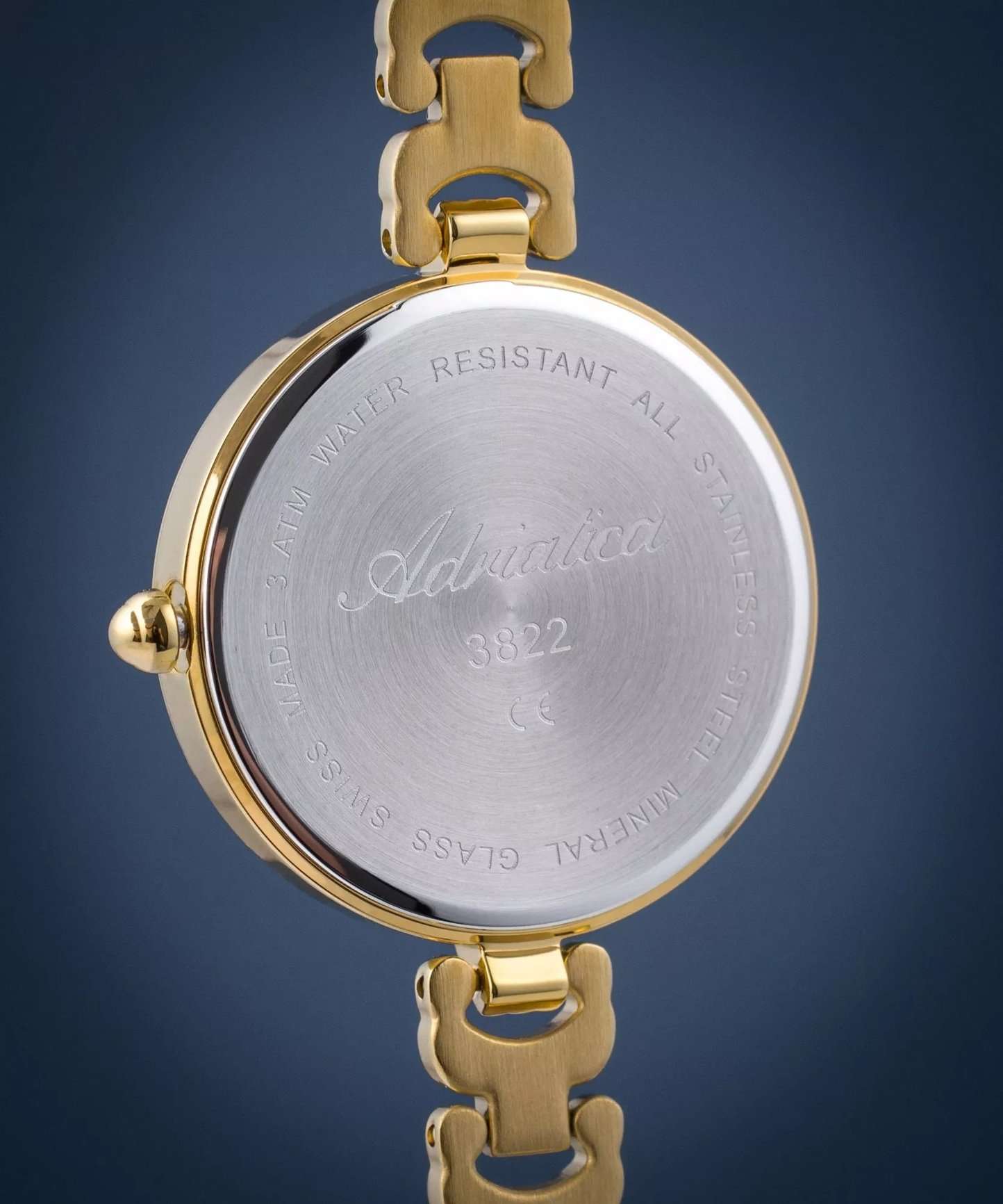 Изысканные женские часы Adriatica A3822.1141Q, произведенные в Швейцарии. Эти часы идеально подойдут для женщин, ценящих элегантность и стиль. Часы оснащены надежным кварцевым механизмом Ronda 763, обеспечивающим точность и долговечность. Корпус диаметром 30 мм и толщиной 7 мм выполнен из стали с PVDPVDУльтратонкое покрытие наносится в технике вакуумного напыления, сочетает в себе нитрид титана особой прочности со слоем золота или оксида хрома. Несёт в себе декоративную или защитную функцию. покрытием, что придает часам современный и утонченный вид. Золотистый циферблат, украшенный точками, придает дополнительную изысканность. Минеральное стеклоМинеральное стеклоМинеральное стекло представляет собой искусственно выращенный минерал кварца. Такое стекло отличается особой устойчивостью к повреждениям и царапинам. Уступает по некоторым качествам сапфировому стеклу. защищает циферблат от повреждений, а водозащита уровня 30WR позволяет использовать часы в условиях легкой влажности. Стальной браслет с PVDPVDУльтратонкое покрытие наносится в технике вакуумного напыления, сочетает в себе нитрид титана особой прочности со слоем золота или оксида хрома. Несёт в себе декоративную или защитную функцию. покрытием золотистого цвета с ювелирной застежкой обеспечивает комфортное ношение и надежную фиксацию на запястье.