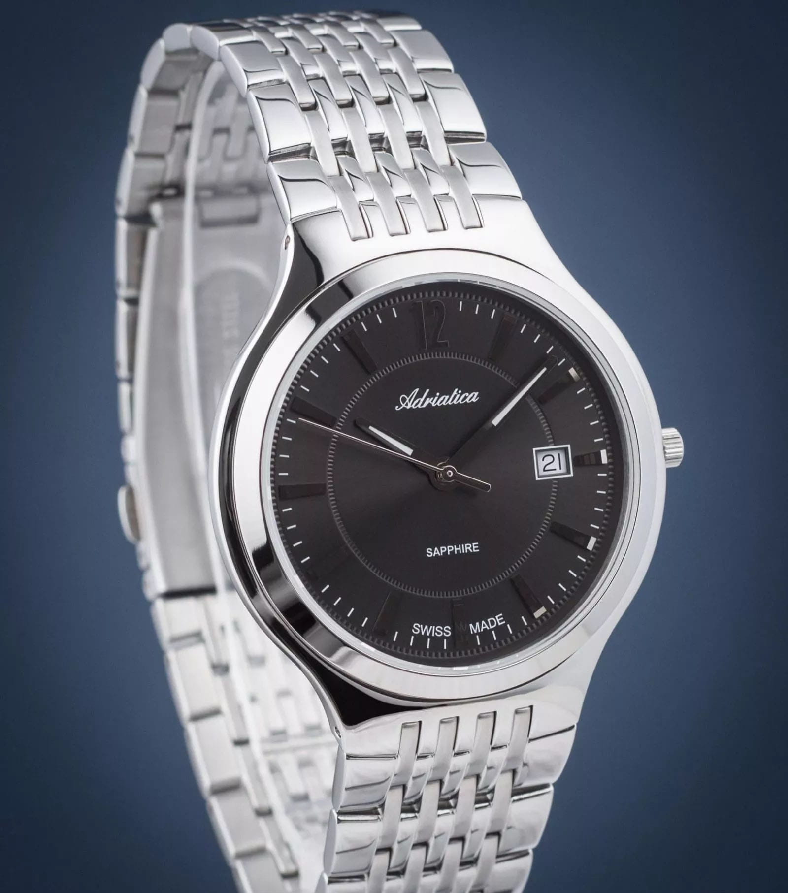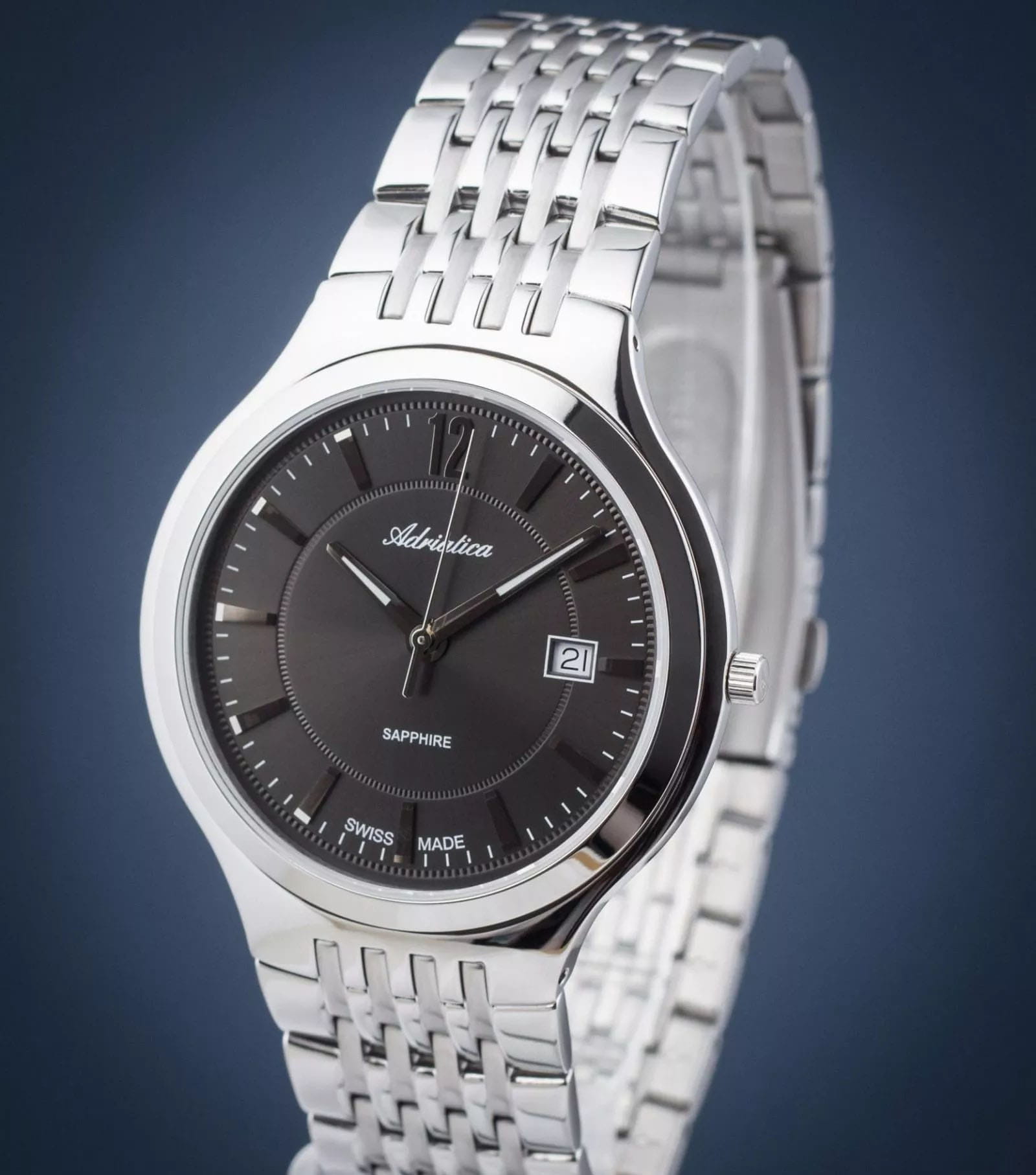 Мужские швейцарские наручные часы Adriatica Premiere A8296.5157Q, кварцевый механизм с высокой точностью. Сапфировое стеклоСапфировое стеклоПрочный и надёжный материал из кристалла сапфира синтетического происхождения, характеризующийся особой твёрдостью и устойчивостью к царапинам и повреждениям. устойчивое к появлению царапин, обладающее высокой прозрачностью. Класс водозащиты: 50 метров, позволит защитить корпус от случайных брызг или капель дождя. Корпус часов изготовлен из стали. Стальной браслет на раскладной застёжкеРаскладная застёжкаТакой тип застёжки используется только на браслетах из металла. Она никогда не раскрывается полностью, происходит разделение на 2 и более частей. Раскладывающая застёжка снизит вероятность потери часов к минимуму..