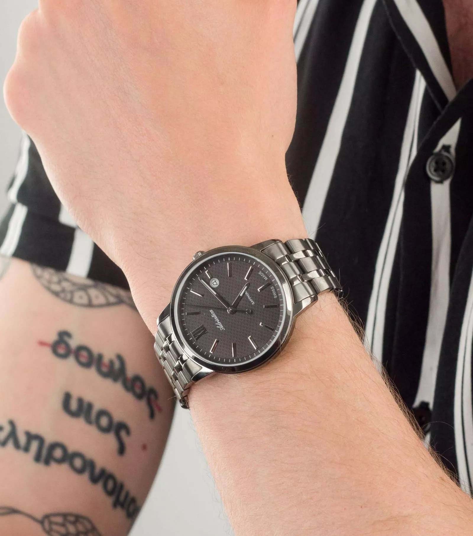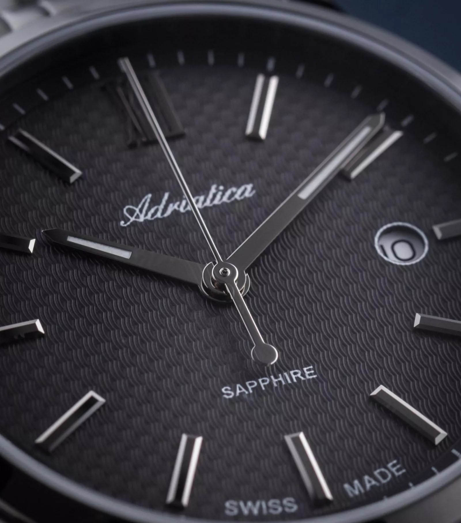 Мужские швейцарские кварцевые часы Adriatica A8333.S166Q, кварцевый механизм с высокой точностью. Сапфировое стеклоСапфировое стеклоПрочный и надёжный материал из кристалла сапфира синтетического происхождения, характеризующийся особой твёрдостью и устойчивостью к царапинам и повреждениям. устойчивое к появлению царапин, обладающее высокой прозрачностью. Класс водозащиты: 30 метров, позволит защитить корпус от случайных брызг или капель дождя. Корпус часов изготовлен из стали с PVD-покрытиемPVDУльтратонкое покрытие наносится в технике вакуумного напыления, сочетает в себе нитрид титана особой прочности со слоем золота или оксида хрома. Несёт в себе декоративную или защитную функцию.. Стальной браслет на раскладной застёжкеРаскладная застёжкаТакой тип застёжки используется только на браслетах из металла. Она никогда не раскрывается полностью, происходит разделение на 2 и более частей. Раскладывающая застёжка снизит вероятность потери часов к минимуму. с PVD-покрытиемPVDУльтратонкое покрытие наносится в технике вакуумного напыления, сочетает в себе нитрид титана особой прочности со слоем золота или оксида хрома. Несёт в себе декоративную или защитную функцию.. Стрелки с люминесцентным покрытиемЛюминесцентное покрытиеПозволяет считывать показания времени в темноте. Производители наносят на стрелки, часовые индексы, безель или поверхность циферблата светонакопительный состав, дающий холодное свечение.. Окошко даты находится в положении 3 часа.