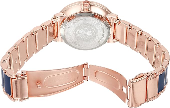 Женские американские часы с минеральным стекломМинеральное стеклоМинеральное стекло представляет собой искусственно выращенный минерал кварца. Такое стекло отличается особой устойчивостью к повреждениям и царапинам. Уступает по некоторым качествам сапфировому стеклу. Anne Klein Metals 3920NVRG, кварцевый механизм с высокой точностью. Класс водозащиты: 30 метров, позволит защитить корпус от случайных брызг или капель дождя. Корпус часов изготовлен из стали с PVD-покрытиемPVDУльтратонкое покрытие наносится в технике вакуумного напыления, сочетает в себе нитрид титана особой прочности со слоем золота или оксида хрома. Несёт в себе декоративную или защитную функцию.. Стальной браслет на раскладной застёжкеРаскладная застёжкаТакой тип застёжки используется только на браслетах из металла. Она никогда не раскрывается полностью, происходит разделение на 2 и более частей. Раскладывающая застёжка снизит вероятность потери часов к минимуму. с PVD-покрытиемPVDУльтратонкое покрытие наносится в технике вакуумного напыления, сочетает в себе нитрид титана особой прочности со слоем золота или оксида хрома. Несёт в себе декоративную или защитную функцию. и эмалевыми вставками.