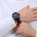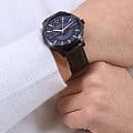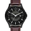 Мужские наручные часы с минеральным стекломМинеральное стеклоМинеральное стекло представляет собой искусственно выращенный минерал кварца. Такое стекло отличается особой устойчивостью к повреждениям и царапинам. Уступает по некоторым качествам сапфировому стеклу. Armani Exchange Hampton AX2446, кварцевый механизм с высокой точностью. Класс водозащиты: 50 метров, позволит защитить корпус от случайных брызг или капель дождя. Корпус часов изготовлен из стали с черным IP-покрытиемIP-покрытиеМетод ионного напыления. Демонстрирует повышенную устойчивость к истиранию, окислению и химическим веществам. Под воздействием высокого давления и температуры около 1500°C молекулы металла надёжно соединяются с частицами корпуса часов.. Кожаный ремешок на стандартной застёжке. Метки в виде штрихов. Окошко даты в положении 3 часа.