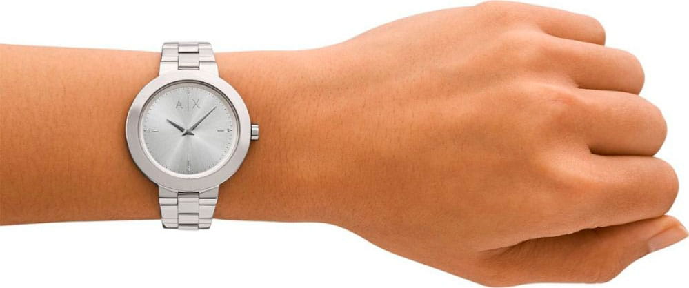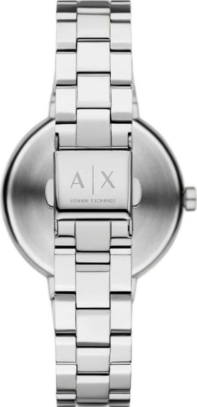 Женские часы Armani Exchange Jackie AX5170 — стильный аксессуар, который подчеркнет ваш современный образ. Эти кварцевые часы сочетают в себе утонченность и практичность, идеально подходя для ежедневного ношения. Корпус из нержавеющей стали, диаметром 36 мм и толщиной 6 мм создают элегантный и стойкий к царапинам вид, а также серебристый циферблат придает часам изысканность и универсальность. Минеральное стеклоМинеральное стеклоМинеральное стекло представляет собой искусственно выращенный минерал кварца. Такое стекло отличается особой устойчивостью к повреждениям и царапинам. Уступает по некоторым качествам сапфировому стеклу. защищает их от царапин и повреждений, сохраняя первозданный вид даже при активном использовании. Стальной браслет на раскладной застёжкеРаскладная застёжкаТакой тип застёжки используется только на браслетах из металла. Она никогда не раскрывается полностью, происходит разделение на 2 и более частей. Раскладывающая застёжка снизит вероятность потери часов к минимуму. обеспечивает надежную фиксацию на запястье. Циферблат выполнен по технологии Sunray (солнечные лучи) и украшен кристаллами. Метки в виде штрихов. Водозащита 50WR позволяет защитить часы от случайных брызг воды.