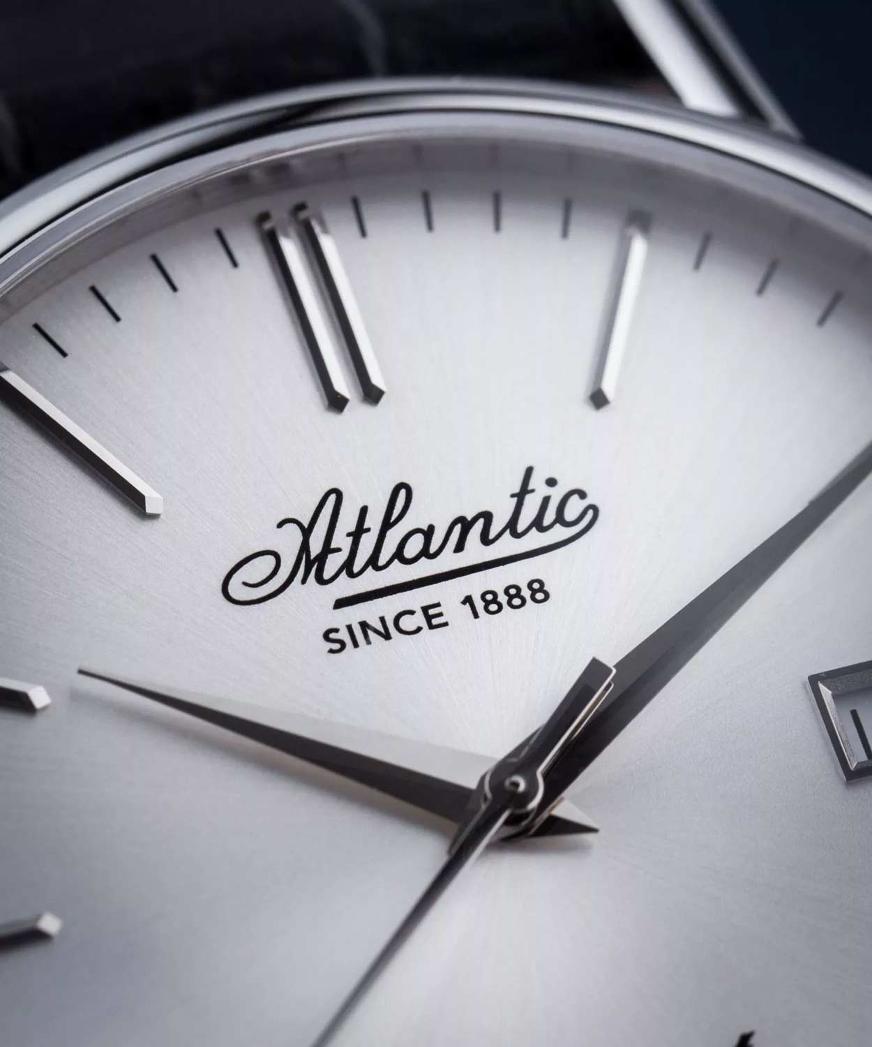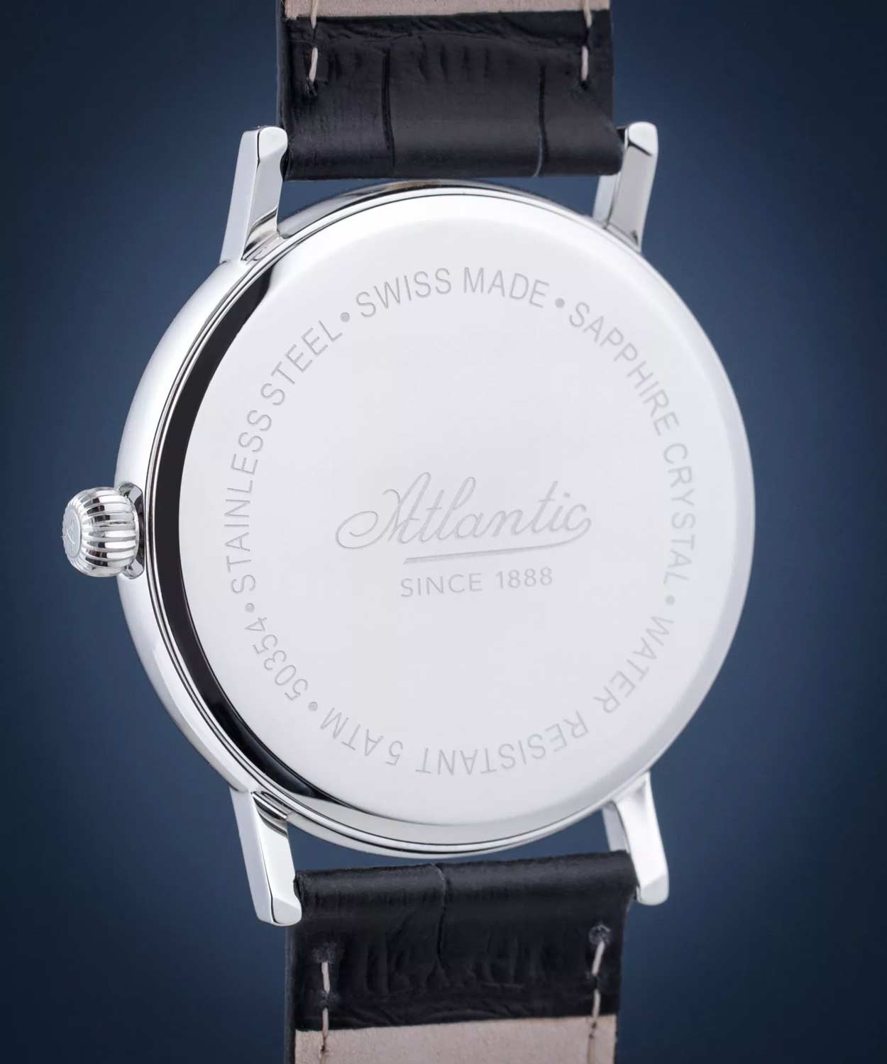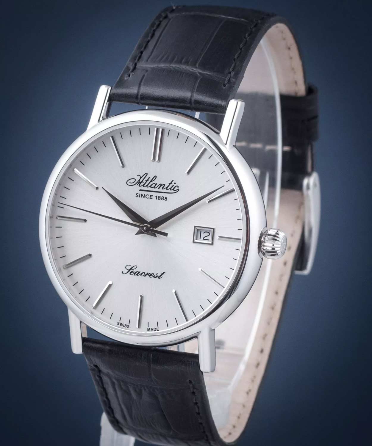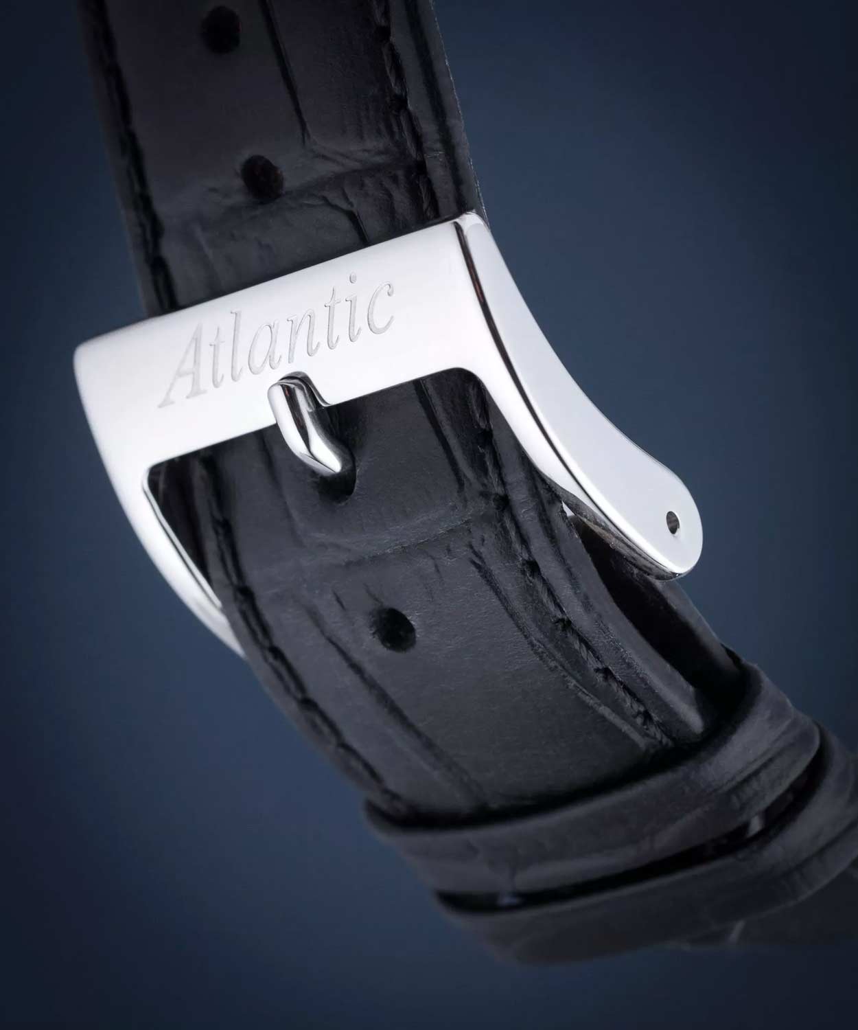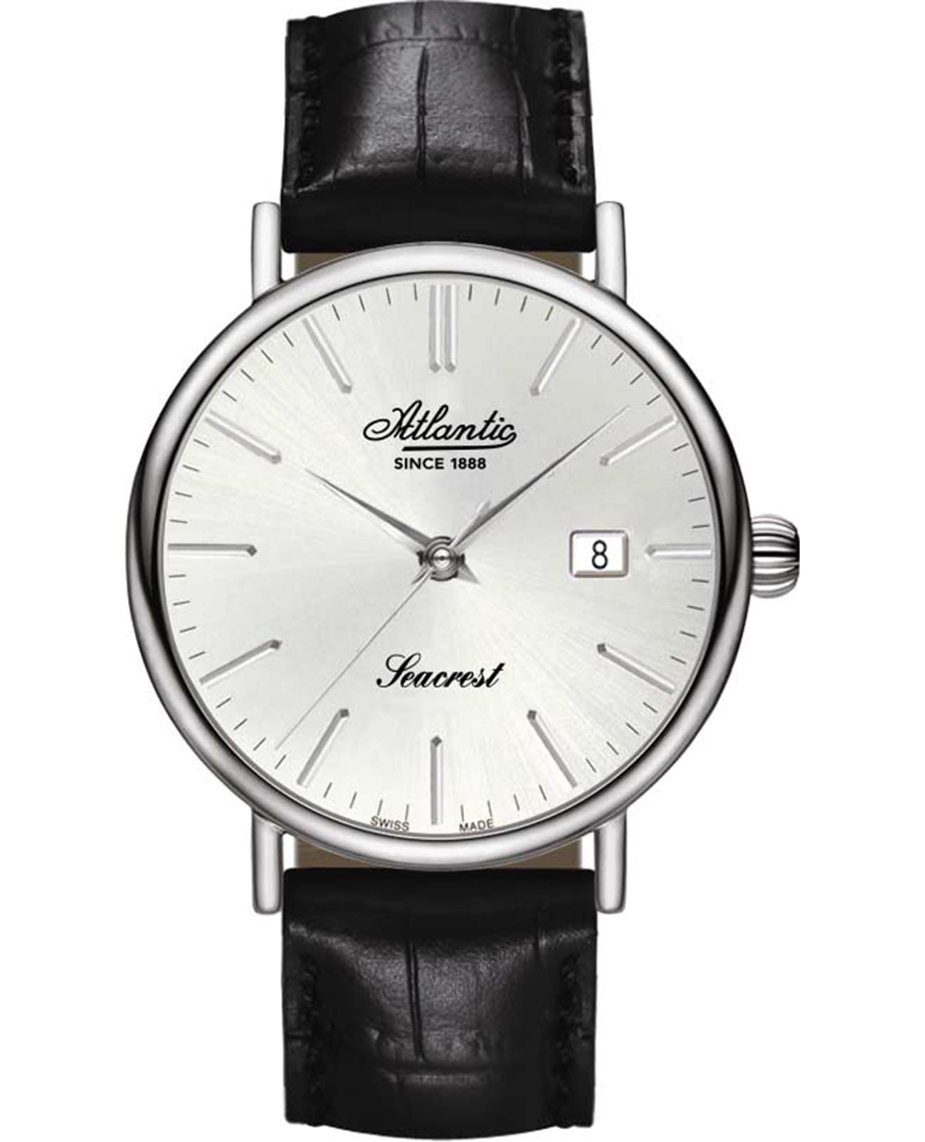 Мужские швейцарские часы Atlantic 50354.41.21, кварцевый механизм с высокой точностью. Циферблат часов с сапфировым стекломСапфировое стеклоПрочный и надёжный материал из кристалла сапфира синтетического происхождения, характеризующийся особой твёрдостью и устойчивостью к царапинам и повреждениям., устойчивым к появлению царапин и обладающее высокой прозрачностью. Класс водозащиты: 50 метров, позволит защитить корпус от случайных брызг или капель дождя. Корпус часов изготовлен из нержавеющей стали. Кожаный ремешок на стандартной застёжке. Окошко даты находится в положении 3 часа.