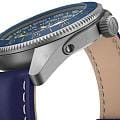 Циферблат отличается детальной функциональностью: в центре — крупные арабские цифры и стрелки, покрытые люминесцентным покрытиемЛюминесцентное покрытиеПозволяет считывать показания времени в темноте. Производители наносят на стрелки, часовые индексы, безель или поверхность циферблата светонакопительный состав, дающий холодное свечение., обеспечивающими мгновенное считывание времени даже в темноте. На «3 часах» — окошко даты, а индикатор второго часового пояса (GMT) удобно расположен на «9 часах». С внешней стороны — вращающийся безельБезельВнешний ободок, закрепляющий стекло. В спортивных часах так называется поворотное кольцо с делениями на циферблате, выполняет роль таймера – замеряет отрезки времени на шкале. Неподвижный безель – элемент декора. Однонаправленно вращающийся безель на дайверских часах позволяет фиксировать моменты погружения и выныривания на поверхность. с PVD-покрытиемPVDУльтратонкое покрытие наносится в технике вакуумного напыления, сочетает в себе нитрид титана особой прочности со слоем золота или оксида хрома. Несёт в себе декоративную или защитную функцию. с насечкой и градусной шкалой для секунд — идеален для расчёта времени пути или времени прибытия .