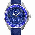 Циферблат отличается детальной функциональностью: в центре — крупные арабские цифры и стрелки, покрытые люминесцентным покрытиемЛюминесцентное покрытиеПозволяет считывать показания времени в темноте. Производители наносят на стрелки, часовые индексы, безель или поверхность циферблата светонакопительный состав, дающий холодное свечение., обеспечивающими мгновенное считывание времени даже в темноте. На «3 часах» — окошко даты, а индикатор второго часового пояса (GMT) удобно расположен на «9 часах». С внешней стороны — вращающийся безельБезельВнешний ободок, закрепляющий стекло. В спортивных часах так называется поворотное кольцо с делениями на циферблате, выполняет роль таймера – замеряет отрезки времени на шкале. Неподвижный безель – элемент декора. Однонаправленно вращающийся безель на дайверских часах позволяет фиксировать моменты погружения и выныривания на поверхность. с PVD-покрытиемPVDУльтратонкое покрытие наносится в технике вакуумного напыления, сочетает в себе нитрид титана особой прочности со слоем золота или оксида хрома. Несёт в себе декоративную или защитную функцию. с насечкой и градусной шкалой для секунд — идеален для расчёта времени пути или времени прибытия  .