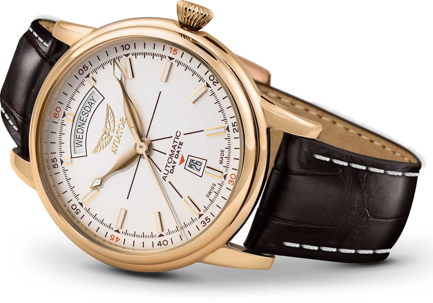 Швейцарские мужские механические часы Aviator Douglas Day-Date V.3.20.1.147.4