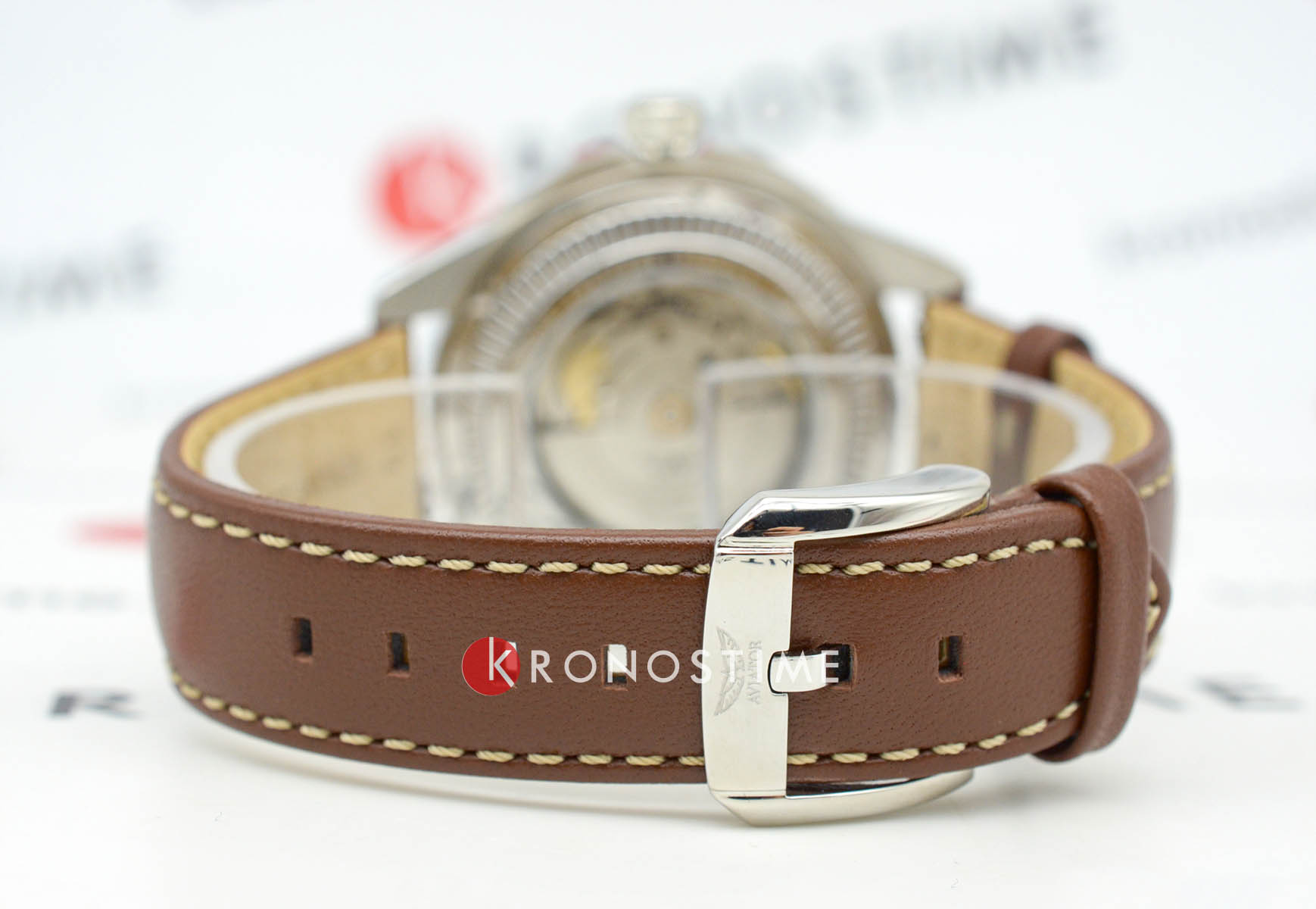 Aviator Airacobra V.3.39.0.340.0 — швейцарские часы в классике авиадизайна, сочетающие безупречную читаемость и высокую надёжность. Корпус диаметром 42,8 мм выполнен из нержавеющей стали 316L. Матовый циферблат с крупными арабскими цифрами, широкими стрелками и контрастной шкалой минут обеспечивает точную и быструю считываемость информации — как и положено настоящим пилотским часам. У отметки «3 часа» — окошко даты. Часовые метки и стрелки покрыты люминесцентным покрытиемЛюминесцентное покрытиеПозволяет считывать показания времени в темноте. Производители наносят на стрелки, часовые индексы, безель или поверхность циферблата светонакопительный состав, дающий холодное свечение. Superluminova, позволяющим легко определять время даже в тёмное время суток. Поверхность защищена прочным сапфировым стекломСапфировое стеклоПрочный и надёжный материал из кристалла сапфира синтетического происхождения, характеризующийся особой твёрдостью и устойчивостью к царапинам и повреждениям. с антибликовым покрытием, устойчивым к царапинам. Сердце модели — швейцарский механизм Sellita SW 200-1, известный своей точностью и долговечностью. Водозащита 100 метров, позволит плавать, нырять и заниматься другими водными видами спорта. Завинчивающаяся головка и задняя крышка обеспечивают уверенную ударопрочностьУдаропрочный корпусМеханизм заключён в корпус, выполненный из современных материалов, устойчивых к ударам, механическим повреждениям и падению с высоты: инновационный пластик, карбон, нержавеющая сталь, титан. и надёжную защиту от влаги и пыли. В механизме 26 камней, запас хода до 38 часов. Модель дополнена кожаным ремешком с выразительной текстурой и классическим стилем, закреплённым с помощью стандартной застежки — для максимального комфорта и лёгкости в повседневном использовании. Aviator — это образец лётной точности, инженерной чёткости и сдержанной роскоши, идеально подходящий для тех, кто ценит функциональность и уверенность в каждом элементе.