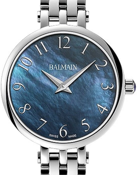 Женские часы Balmain Sedirea B4291.33.64 кварцевый механизм с высокой точностью. Сапфировое стеклоСапфировое стеклоПрочный и надёжный материал из кристалла сапфира синтетического происхождения, характеризующийся особой твёрдостью и устойчивостью к царапинам и повреждениям. устойчивое к появлению царапин, обладающее высокой прозрачностью. Корпус изготовлен из нержавеющей стали. Класс водозащиты: 50 метров, позволит защитить корпус от случайных брызг или капель дождя. Стальной браслет на застёжке «бабочка» с кнопкамиЗастёжка "бабочка"Такой вид застёжки дополняется предохранителями, помогающими избежать случайного раскрытия браслета. Обладают изящным исполнением. .