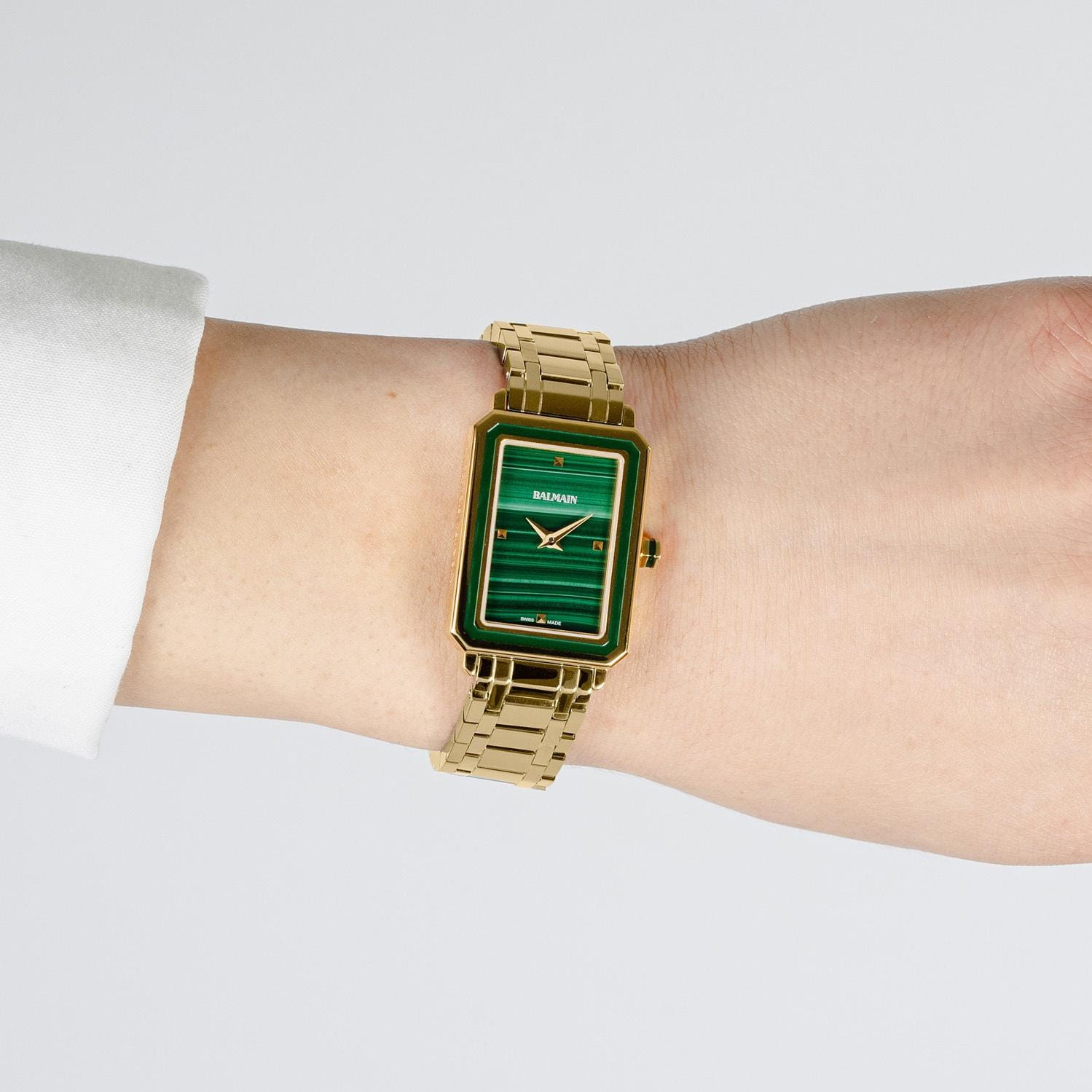 Женские часы Balmain Eirini B4395.33.76 кварцевый механизм с высокой точностью. Сапфировое стеклоСапфировое стеклоПрочный и надёжный материал из кристалла сапфира синтетического происхождения, характеризующийся особой твёрдостью и устойчивостью к царапинам и повреждениям. устойчивое к появлению царапин, обладающее высокой прозрачностью. Корпус изготовлен из нержавеющей стали с PVD-покрытиемPVDУльтратонкое покрытие наносится в технике вакуумного напыления, сочетает в себе нитрид титана особой прочности со слоем золота или оксида хрома. Несёт в себе декоративную или защитную функцию.. Класс водозащиты: 30 метров, позволит защитить корпус от случайных брызг или капель дождя. Стальной браслет на застёжке «бабочка» с кнопкамиЗастёжка "бабочка"Такой вид застёжки дополняется предохранителями, помогающими избежать случайного раскрытия браслета. Обладают изящным исполнением. с PVD-покрытиемPVDУльтратонкое покрытие наносится в технике вакуумного напыления, сочетает в себе нитрид титана особой прочности со слоем золота или оксида хрома. Несёт в себе декоративную или защитную функцию..