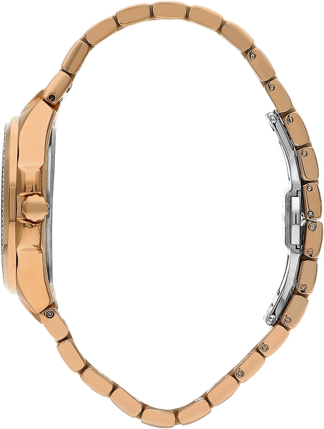 Американские женские часы Beverly Hills Polo Club BP3320X.430 с минеральным стекломМинеральное стеклоМинеральное стекло представляет собой искусственно выращенный минерал кварца. Такое стекло отличается особой устойчивостью к повреждениям и царапинам. Уступает по некоторым качествам сапфировому стеклу. кварцевый механизм с высокой точностью. Класс водозащиты: 30 метров, позволит защитить корпус от случайных брызг или капель дождя. Корпус и браслет часов изготовлены из стали с IP-покрытиемIP-покрытиеМетод ионного напыления. Демонстрирует повышенную устойчивость к истиранию, окислению и химическим веществам. Под воздействием высокого давления и температуры около 1500°C молекулы металла надёжно соединяются с частицами корпуса часов. цветам розовое золото. Стальной браслет на застёжке-бабочке с кнопкамиЗастёжка "бабочка"Такой вид застёжки дополняется предохранителями, помогающими избежать случайного раскрытия браслета. Обладают изящным исполнением. . БезельБезельВнешний ободок, закрепляющий стекло. В спортивных часах так называется поворотное кольцо с делениями на циферблате, выполняет роль таймера – замеряет отрезки времени на шкале. Неподвижный безель – элемент декора. Однонаправленно вращающийся безель на дайверских часах позволяет фиксировать моменты погружения и выныривания на поверхность. инкрустирован кристаллами. Окошко даты находятся в положении 3 часа. Стрелки и метки с люминесцентным покрытиемЛюминесцентное покрытиеПозволяет считывать показания времени в темноте. Производители наносят на стрелки, часовые индексы, безель или поверхность циферблата светонакопительный состав, дающий холодное свечение..