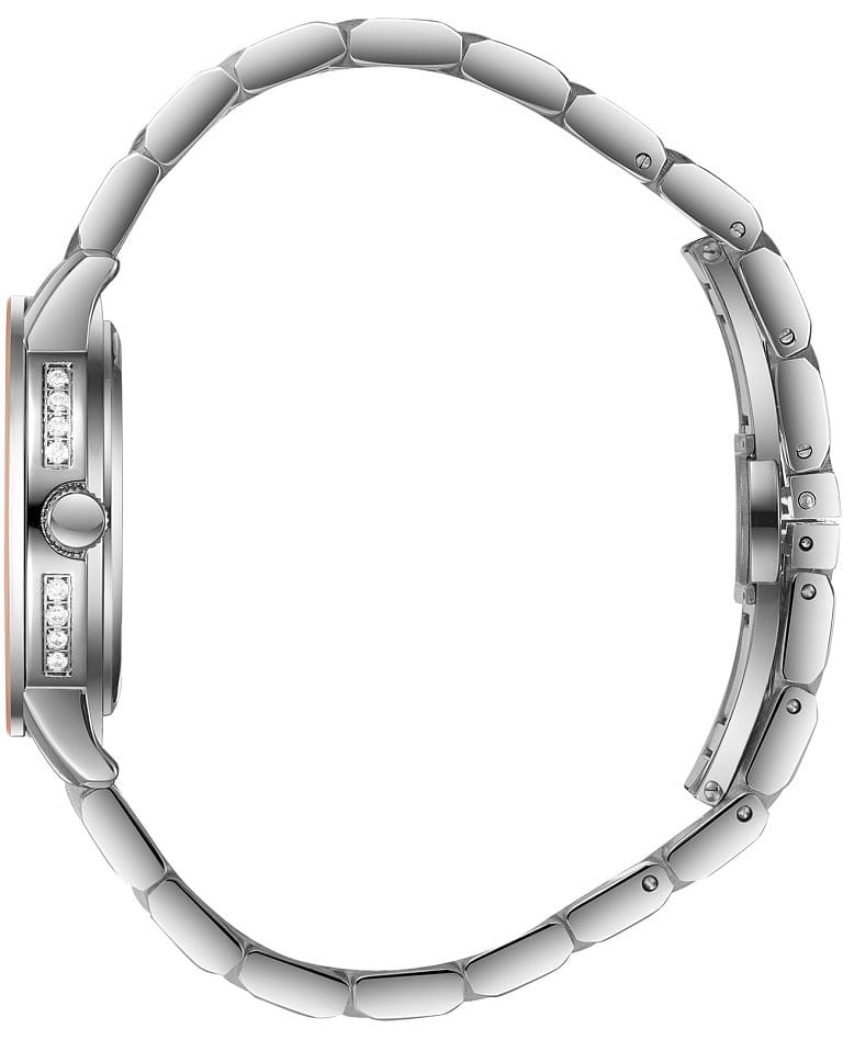 Модель оснащена кварцевым механизмом, обеспечивающим точное измерение времени. Металлический браслет с PVD-покрытиемPVDУльтратонкое покрытие наносится в технике вакуумного напыления, сочетает в себе нитрид титана особой прочности со слоем золота или оксида хрома. Несёт в себе декоративную или защитную функцию. дополнен застёжкой-бабочкойЗастёжка "бабочка"Такой вид застёжки дополняется предохранителями, помогающими избежать случайного раскрытия браслета. Обладают изящным исполнением. , обеспечивающей комфортное ношение и надёжную фиксацию.