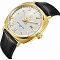 Водозащита до 50 метров (5 ATM) позволяет носить часы во время умывания или приёма душа; однако не рекомендуется использовать их при плавании. Чёрный кожаный ремешок с классической застёжкой обеспечивает комфортное ношение и надёжную фиксацию на запястье.