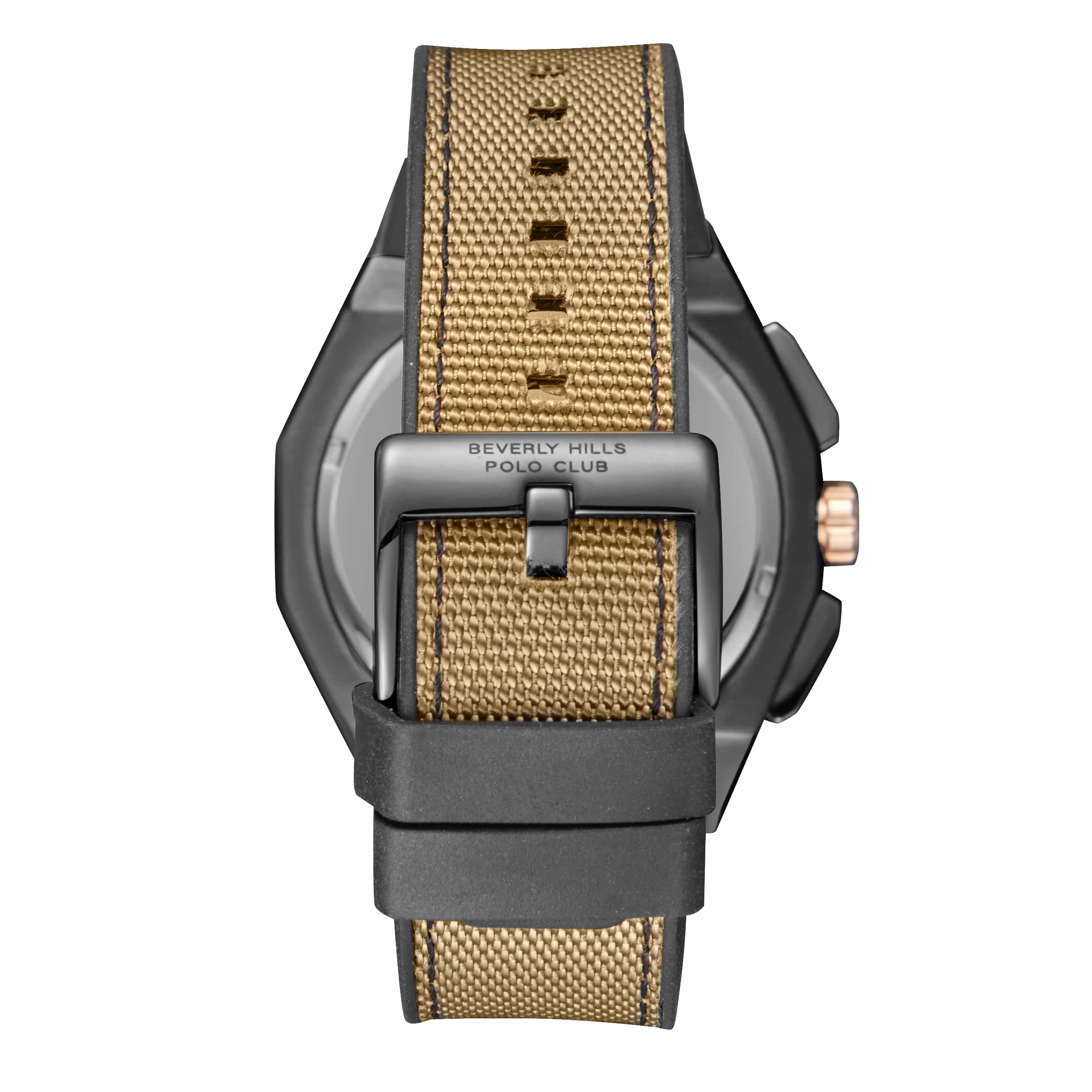 Beverly Hills Polo Club BP3719X.055 – стильные мужские часы, сочетающие современный дизайн и надёжность. Корпус диаметром 45 мм выполнен из нержавеющей стали с PVD-покрытиемPVDУльтратонкое покрытие наносится в технике вакуумного напыления, сочетает в себе нитрид титана особой прочности со слоем золота или оксида хрома. Несёт в себе декоративную или защитную функцию. 316L, обеспечивающей долговечность и устойчивость к коррозии. Циферблат придаёт модели свежий и современный вид, а его поверхность защищена минеральным стекломМинеральное стеклоМинеральное стекло представляет собой искусственно выращенный минерал кварца. Такое стекло отличается особой устойчивостью к повреждениям и царапинам. Уступает по некоторым качествам сапфировому стеклу., устойчивым к царапинам. Часы оснащены точным кварцевым механизмом, гарантирующим надёжное и стабильное отображение времени. Ремень, выполненный из комбинации текстиля и силикона, оснащён стандартной классической застёжкой, обеспечивающей удобство ношения и надёжную фиксацию на запястье. Водозащита до 100 метров (10 ATM) позволяет использовать часы при плавании и других водных видах спорта.