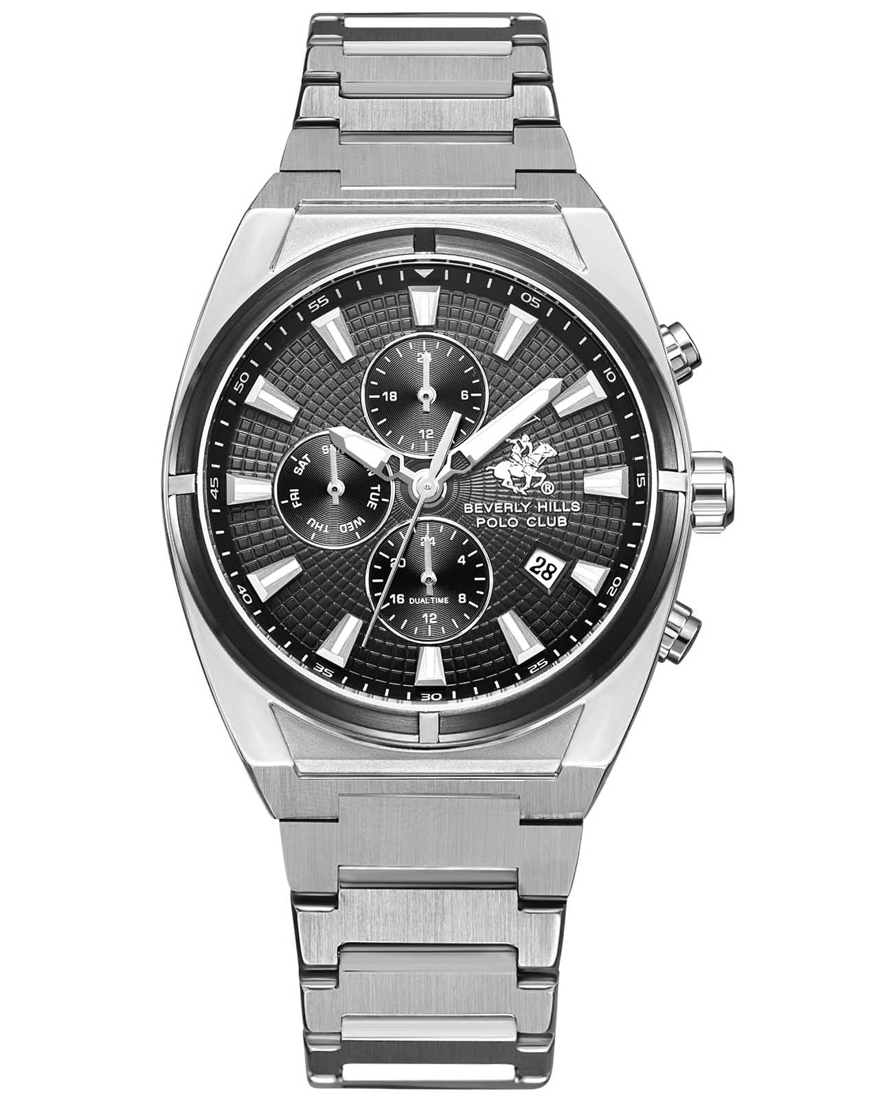 Часы Beverly Hills Polo Club BP3733X.350 — это гармоничное сочетание силы, стиля и современных технологий. Выполненные из высококачественной нержавеющей стали, минеральное стеклоМинеральное стеклоМинеральное стекло представляет собой искусственно выращенный минерал кварца. Такое стекло отличается особой устойчивостью к повреждениям и царапинам. Уступает по некоторым качествам сапфировому стеклу., защищающее циферблат, надёжно оберегает его от царапин, сохраняя яркий блеск. БезельБезельВнешний ободок, закрепляющий стекло. В спортивных часах так называется поворотное кольцо с делениями на циферблате, выполняет роль таймера – замеряет отрезки времени на шкале. Неподвижный безель – элемент декора. Однонаправленно вращающийся безель на дайверских часах позволяет фиксировать моменты погружения и выныривания на поверхность. с PVD-покрытиемPVDУльтратонкое покрытие наносится в технике вакуумного напыления, сочетает в себе нитрид титана особой прочности со слоем золота или оксида хрома. Несёт в себе декоративную или защитную функцию.. С уровнем водозащиты до 100 метров, эти часы готовы сопровождать вас в любых водных приключениях: будь то плавание, ныряние или активные занятия спортом. Удобный браслет из нержавеющей стали с раскладной застёжкой обеспечивает комфортное ношение и надёжную фиксацию на запястье. На циферблате отображается не только текущее время, но и такие полезные функции, как дата, день недели, 24-часовой формат.Стрелки с люминесцентным покрытиемЛюминесцентное покрытиеПозволяет считывать показания времени в темноте. Производители наносят на стрелки, часовые индексы, безель или поверхность циферблата светонакопительный состав, дающий холодное свечение. придают удобство в использовании в темное время суток. Эта модель — истинное воплощение философии Beverly Hills Polo Club: сочетание высоких стандартов качества и неподражаемого стиля, создающее аксессуар, который станет вашим верным компаньоном в повседневной жизни.
