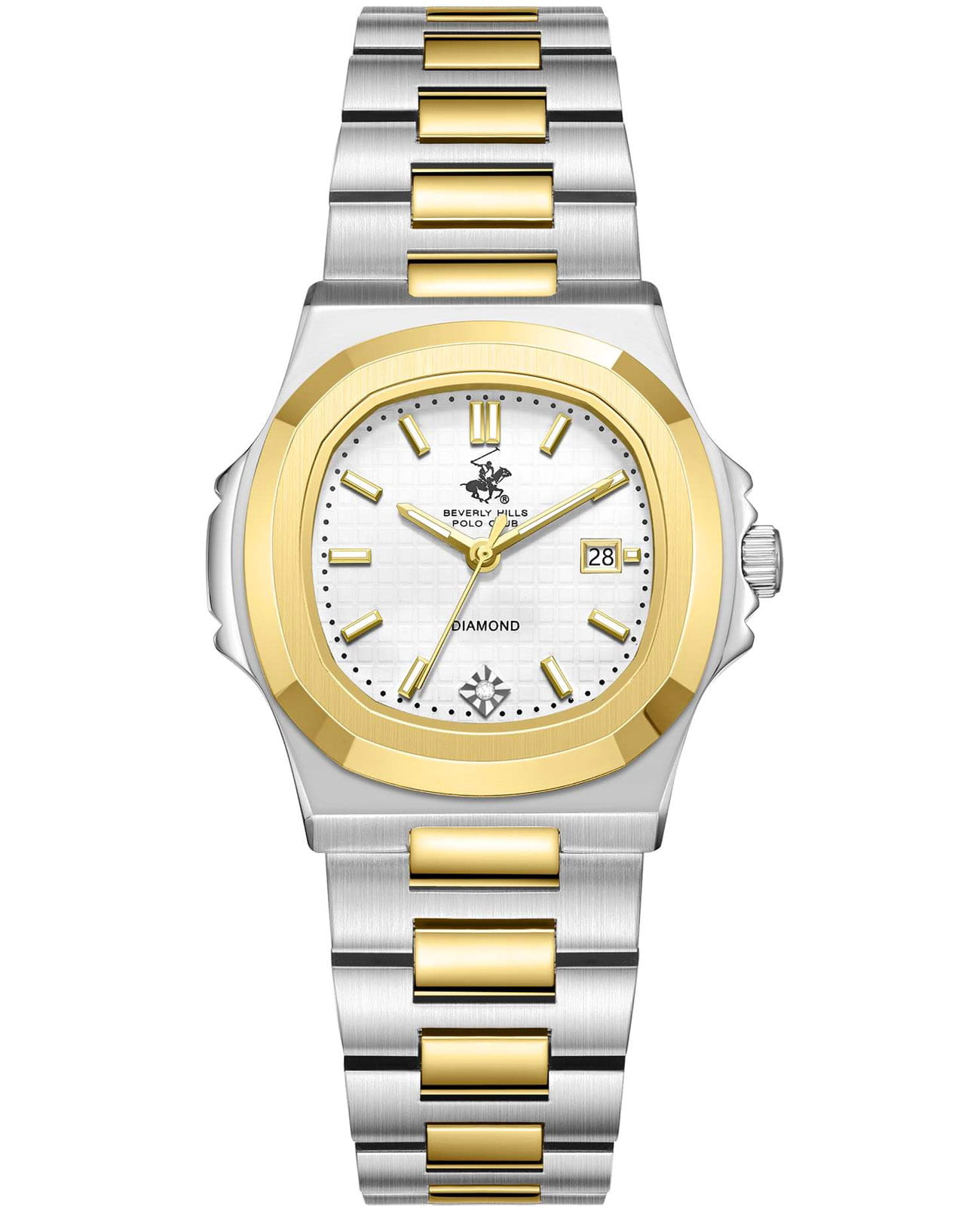 Американские женские часы Beverly Hills Polo Club BP3780X.230 - это стильный женский аксессуар, который сочетает элегантный дизайн и практичность. Корпус выполнен из нержавеющей стали серебристого цвета, диаметром 33,5 мм, что обеспечивает долговечность и утончённый внешний вид. Надежное минеральное стеклоМинеральное стеклоМинеральное стекло представляет собой искусственно выращенный минерал кварца. Такое стекло отличается особой устойчивостью к повреждениям и царапинам. Уступает по некоторым качествам сапфировому стеклу. с сапфировым покрытием защищает циферблат от царапин и обеспечивает долговечность. Метки в виде штрихов, в позиции "6 часов" инкрустирован синтетический бриллиант. Неподвижный безельБезельВнешний ободок, закрепляющий стекло. В спортивных часах так называется поворотное кольцо с делениями на циферблате, выполняет роль таймера – замеряет отрезки времени на шкале. Неподвижный безель – элемент декора. Однонаправленно вращающийся безель на дайверских часах позволяет фиксировать моменты погружения и выныривания на поверхность. с IP-покрытиемIP-покрытиеМетод ионного напыления. Демонстрирует повышенную устойчивость к истиранию, окислению и химическим веществам. Под воздействием высокого давления и температуры около 1500°C молекулы металла надёжно соединяются с частицами корпуса часов. золотистого цвета. Модель оснащена кварцевым механизмом, обеспечивающим высокую точность хода. Стальной браслет на застёжке-бабочке с кнопкамиЗастёжка "бабочка"Такой вид застёжки дополняется предохранителями, помогающими избежать случайного раскрытия браслета. Обладают изящным исполнением. обеспечивает комфортное ношение. Стрелки и метки оснащены люминесцентным покрытиемЛюминесцентное покрытиеПозволяет считывать показания времени в темноте. Производители наносят на стрелки, часовые индексы, безель или поверхность циферблата светонакопительный состав, дающий холодное свечение., обеспечивающим отличную видимость даже при слабом освещении. Окошко даты находится в положении 3 часа. Водозащита 30 метров позволит защитить корпус от случайных брызг или капель дождя. Эта модель – отличный выбор для тех, кто ищет сочетание стиля, качества и функциональности. Часы станут не только полезным аксессуаром, но и выразительным элементом вашего имиджа.