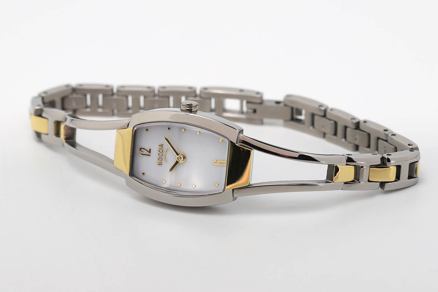 Женские ультратонкие немецкие титановые часы Boccia Titanium 3262-02 - кварцевый механизм с высокой точностью. Минеральное стеклоМинеральное стеклоМинеральное стекло представляет собой искусственно выращенный минерал кварца. Такое стекло отличается особой устойчивостью к повреждениям и царапинам. Уступает по некоторым качествам сапфировому стеклу. устойчивое к мелким механическим повреждениям. Корпус изготовлен из титана с частичным PVD-покрытиемPVDУльтратонкое покрытие наносится в технике вакуумного напыления, сочетает в себе нитрид титана особой прочности со слоем золота или оксида хрома. Несёт в себе декоративную или защитную функцию. диаметром 20 мм подчеркивает современный дизайн модели. Титановый браслет на ювелирной застежке с частичным PVD-покрытиемPVDУльтратонкое покрытие наносится в технике вакуумного напыления, сочетает в себе нитрид титана особой прочности со слоем золота или оксида хрома. Несёт в себе декоративную или защитную функцию. обеспечивает комфортное ношение. Класс водозащиты: 50 метров, позволит защитить корпус от случайных брызг или капель дождя.