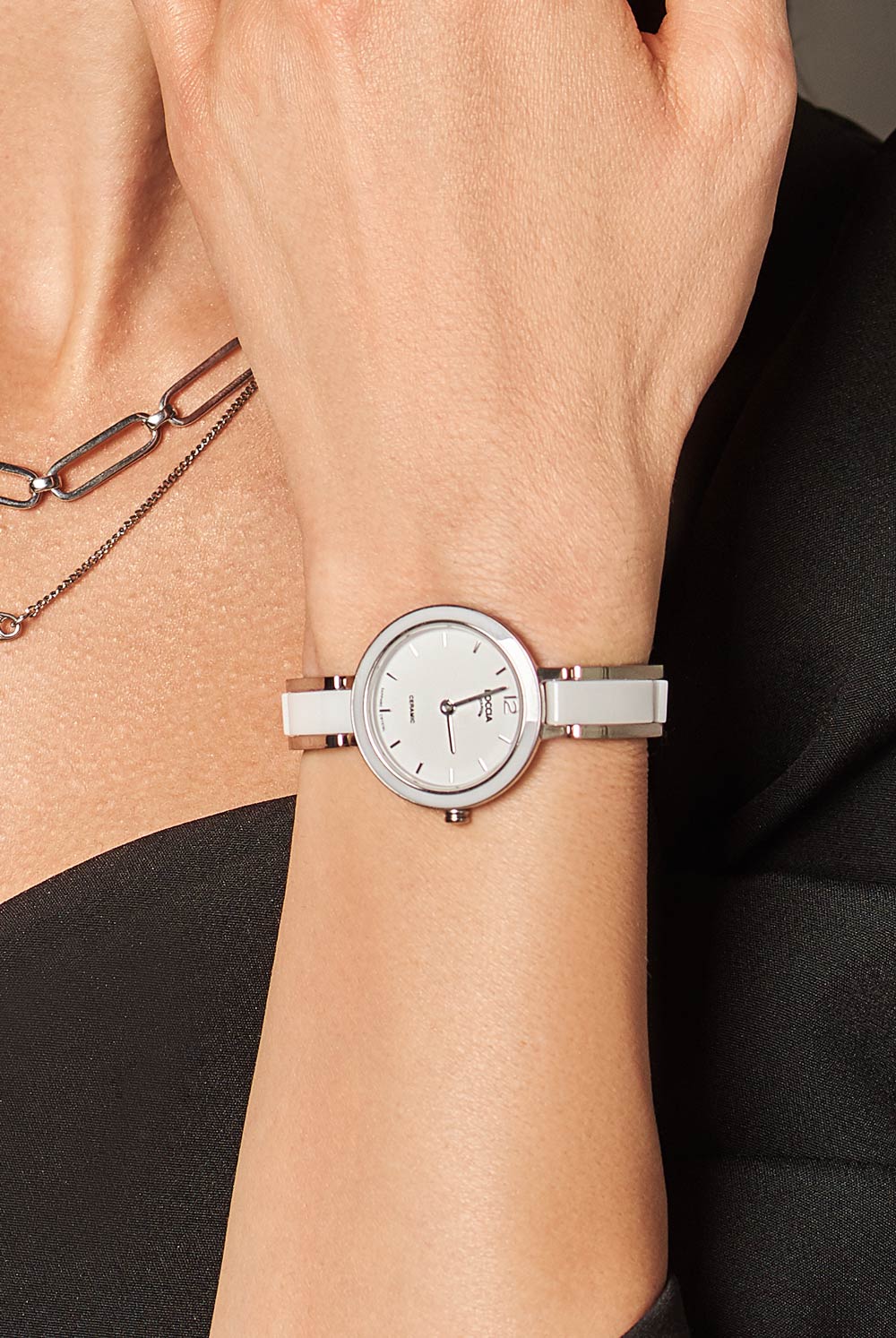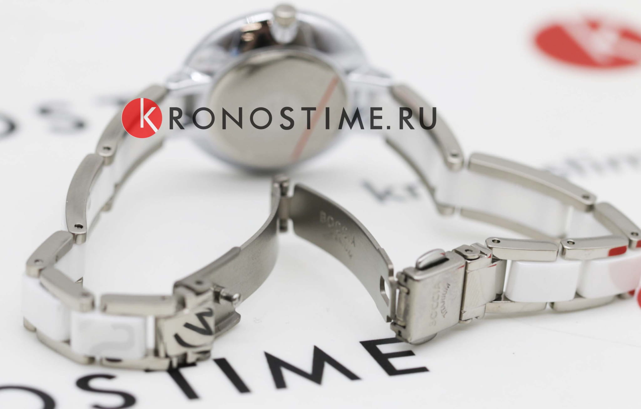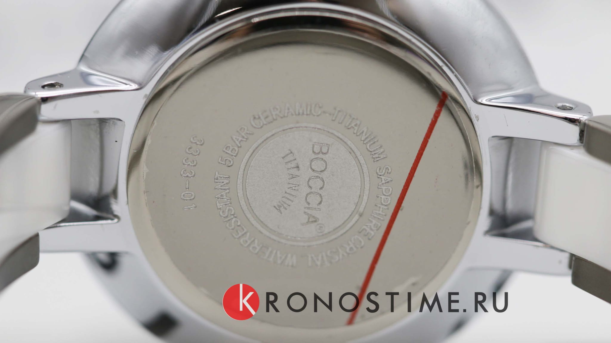 Женские наручные часы Boccia Titanium 3333-01 с надёжным кварцевым механизмом. Корпус и браслет часов изготовлены из титана с керамическими вставками. Сапфировое стеклоСапфировое стеклоПрочный и надёжный материал из кристалла сапфира синтетического происхождения, характеризующийся особой твёрдостью и устойчивостью к царапинам и повреждениям. устойчивое к мелким механическим повреждениям. Класс водозащиты: 50 метров, позволит защитить корпус от случайных брызг или капель дождя. Титановый браслет на раскладной застёжкеРаскладная застёжкаТакой тип застёжки используется только на браслетах из металла. Она никогда не раскрывается полностью, происходит разделение на 2 и более частей. Раскладывающая застёжка снизит вероятность потери часов к минимуму..