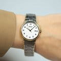 Женские наручные часы Boccia Titanium 3297-02 с надёжным кварцевым механизмом. Корпус и браслет часов изготовлены из титана с частичным PVD-покрытиемPVDУльтратонкое покрытие наносится в технике вакуумного напыления, сочетает в себе нитрид титана особой прочности со слоем золота или оксида хрома. Несёт в себе декоративную или защитную функцию.. Минеральное стеклоМинеральное стеклоМинеральное стекло представляет собой искусственно выращенный минерал кварца. Такое стекло отличается особой устойчивостью к повреждениям и царапинам. Уступает по некоторым качествам сапфировому стеклу. устойчивое к мелким механическим повреждениям. Класс водозащиты: 50 метров, позволит защитить корпус от случайных брызг или капель дождя. Стрелки с люминесцентным покрытиемЛюминесцентное покрытиеПозволяет считывать показания времени в темноте. Производители наносят на стрелки, часовые индексы, безель или поверхность циферблата светонакопительный состав, дающий холодное свечение.. Титановый браслет на раскладной застёжкеРаскладная застёжкаТакой тип застёжки используется только на браслетах из металла. Она никогда не раскрывается полностью, происходит разделение на 2 и более частей. Раскладывающая застёжка снизит вероятность потери часов к минимуму.. Окошко даты находится в положении 3 часа.