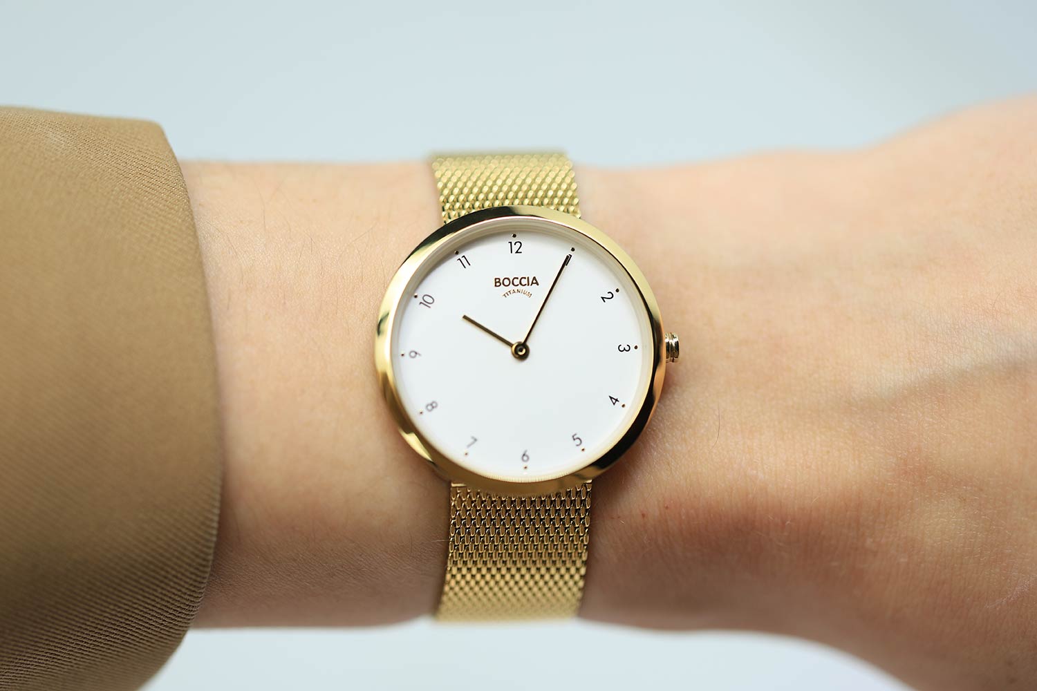 Женские немецкие титановые часы Boccia Titanium Circle-Oval 3315-04, кварцевый механизм с высокой точностью. Минеральное стеклоМинеральное стеклоМинеральное стекло представляет собой искусственно выращенный минерал кварца. Такое стекло отличается особой устойчивостью к повреждениям и царапинам. Уступает по некоторым качествам сапфировому стеклу. устойчивое к появлению царапин, обладающее высокой прозрачностью. Корпус изготовлен из титана c PVDPVDУльтратонкое покрытие наносится в технике вакуумного напыления, сочетает в себе нитрид титана особой прочности со слоем золота или оксида хрома. Несёт в себе декоративную или защитную функцию. покрытием. Метки в виде штрихов. Класс водозащиты: 30 метров, позволит защитить корпус от случайных брызг или капель дождя. Стальной браслет миланского плетения с PVDPVDУльтратонкое покрытие наносится в технике вакуумного напыления, сочетает в себе нитрид титана особой прочности со слоем золота или оксида хрома. Несёт в себе декоративную или защитную функцию. покрытием на раскладной застёжкеРаскладная застёжкаТакой тип застёжки используется только на браслетах из металла. Она никогда не раскрывается полностью, происходит разделение на 2 и более частей. Раскладывающая застёжка снизит вероятность потери часов к минимуму..