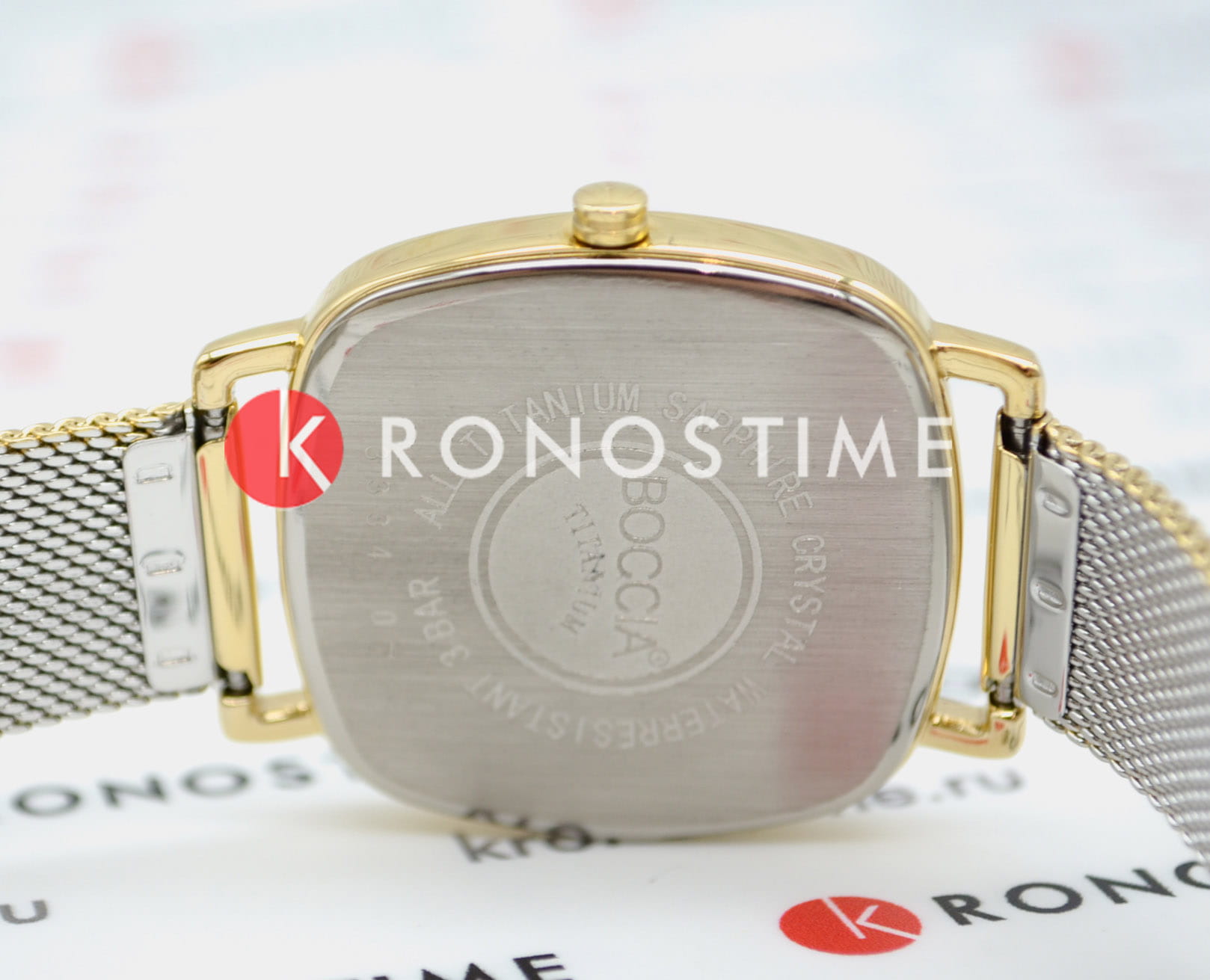 Женские немецкие титановые часы Boccia Titanium Square 3334-07, кварцевый механизм с высокой точностью. Минеральное стеклоМинеральное стеклоМинеральное стекло представляет собой искусственно выращенный минерал кварца. Такое стекло отличается особой устойчивостью к повреждениям и царапинам. Уступает по некоторым качествам сапфировому стеклу. устойчивое к появлению царапин, обладающее высокой прозрачностью. Квадратный корпус изготовлен из титана c PVDPVDУльтратонкое покрытие наносится в технике вакуумного напыления, сочетает в себе нитрид титана особой прочности со слоем золота или оксида хрома. Несёт в себе декоративную или защитную функцию. покрытием. Метки в виде штрихов. Класс водозащиты: 30 метров, позволит защитить корпус от случайных брызг или капель дождя. Стальной браслет миланского плетения c PVDPVDУльтратонкое покрытие наносится в технике вакуумного напыления, сочетает в себе нитрид титана особой прочности со слоем золота или оксида хрома. Несёт в себе декоративную или защитную функцию. покрытием на раскладной застёжкеРаскладная застёжкаТакой тип застёжки используется только на браслетах из металла. Она никогда не раскрывается полностью, происходит разделение на 2 и более частей. Раскладывающая застёжка снизит вероятность потери часов к минимуму..