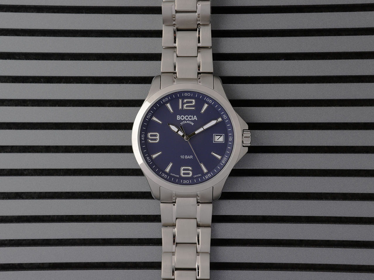 Мужские немецкие титановые часы Boccia Titanium Circle-Oval 3591-03, кварцевый механизм с высокой точностью. Сапфировое стеклоСапфировое стеклоПрочный и надёжный материал из кристалла сапфира синтетического происхождения, характеризующийся особой твёрдостью и устойчивостью к царапинам и повреждениям. устойчивое к появлению царапин, обладающее высокой прозрачностью. Корпус изготовлен из титана. Стрелки с люминесцентным покрытиемЛюминесцентное покрытиеПозволяет считывать показания времени в темноте. Производители наносят на стрелки, часовые индексы, безель или поверхность циферблата светонакопительный состав, дающий холодное свечение.. Окошко даты в положении 3 часов. Класс водозащиты: 100 метров, позволит плавать, нырять и заниматься другими водными видами спорта. Браслет из титана на раскладной застёжкеРаскладная застёжкаТакой тип застёжки используется только на браслетах из металла. Она никогда не раскрывается полностью, происходит разделение на 2 и более частей. Раскладывающая застёжка снизит вероятность потери часов к минимуму..