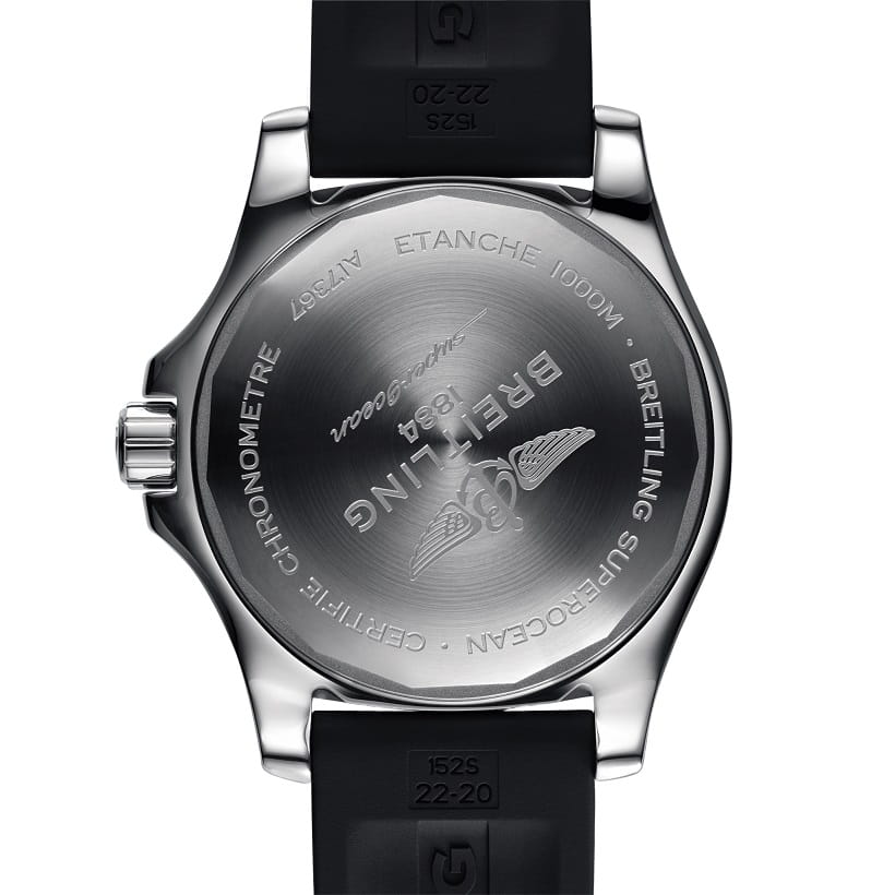 Мужские швейцарские часы Breitling Superocean Automatic 44 A17367D71B1S2, механический механизм (автоматический калибр) Breitling 17 с высокой точностью. Выпуклое сапфировое стекло устойчивое к появлению царапин, обладающее высокой прозрачностью и антибликовым покрытием с обеих сторон.