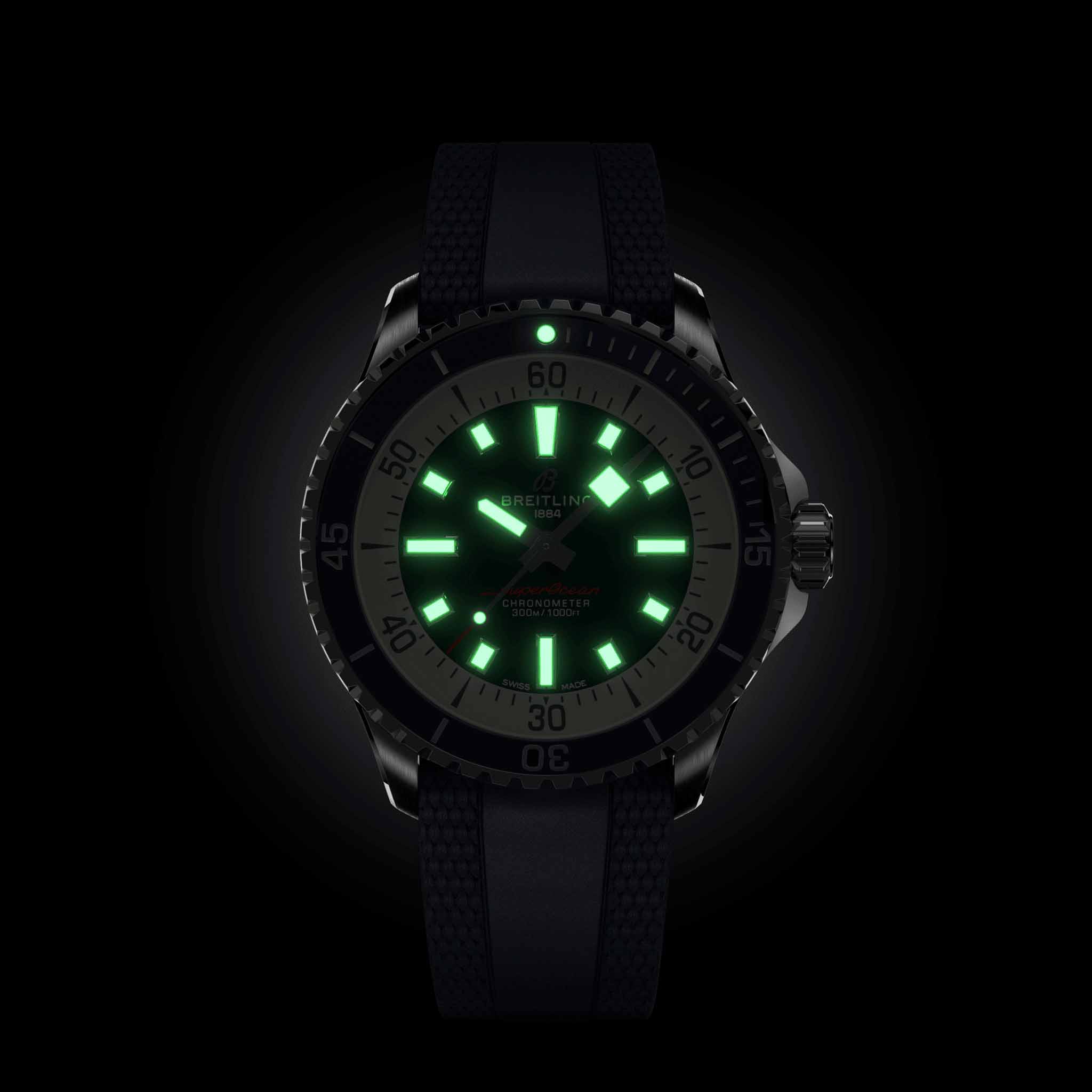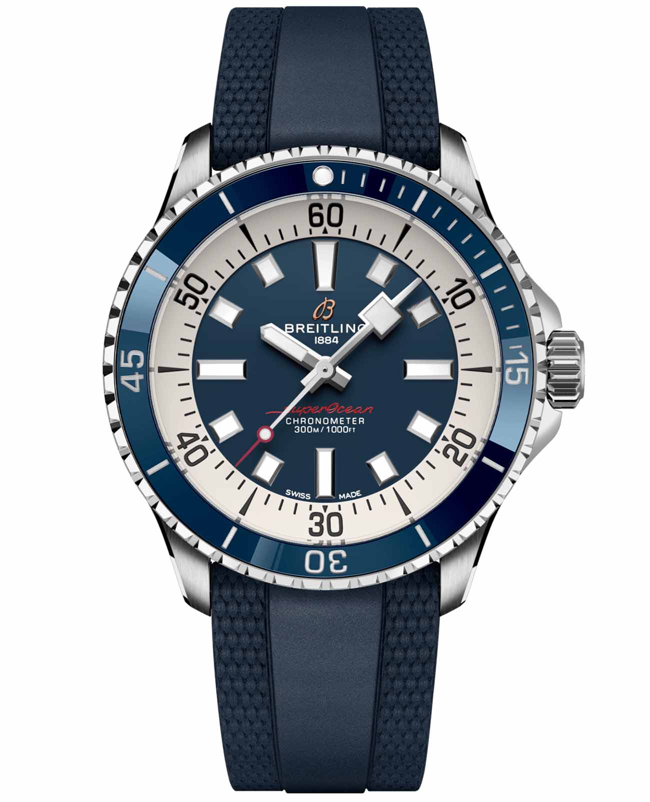 Мужские водонепроницаемые швейцарские часы Breitling Superocean Automatic 42 A17375E71C1S1, механический механизм (автоматический калибр) с высокой точностью. Сапфировое стеклоСапфировое стеклоПрочный и надёжный материал из кристалла сапфира синтетического происхождения, характеризующийся особой твёрдостью и устойчивостью к царапинам и повреждениям. устойчивое к появлению царапин, обладающее высокой прозрачностью. Класс водозащиты: 300 метров, позволит плавать, нырять и заниматься другими водными видами спорта. Корпус часов изготовлен из стали. Силиконовый ремешок с раскладной застёжкойРаскладная застёжкаТакой тип застёжки используется только на браслетах из металла. Она никогда не раскрывается полностью, происходит разделение на 2 и более частей. Раскладывающая застёжка снизит вероятность потери часов к минимуму.. Стрелки и метки с люминесцентным покрытиемЛюминесцентное покрытиеПозволяет считывать показания времени в темноте. Производители наносят на стрелки, часовые индексы, безель или поверхность циферблата светонакопительный состав, дающий холодное свечение.. Широкие стрелки и индексы с люминесцентным покрытиемЛюминесцентное покрытиеПозволяет считывать показания времени в темноте. Производители наносят на стрелки, часовые индексы, безель или поверхность циферблата светонакопительный состав, дающий холодное свечение. обеспечивают легкую читаемость под водой. Вращающийся стальной безельБезельВнешний ободок, закрепляющий стекло. В спортивных часах так называется поворотное кольцо с делениями на циферблате, выполняет роль таймера – замеряет отрезки времени на шкале. Неподвижный безель – элемент декора. Однонаправленно вращающийся безель на дайверских часах позволяет фиксировать моменты погружения и выныривания на поверхность. с люминесцентным покрытиемЛюминесцентное покрытиеПозволяет считывать показания времени в темноте. Производители наносят на стрелки, часовые индексы, безель или поверхность циферблата светонакопительный состав, дающий холодное свечение. Superluminova из нержавеющей стали и керамики, защищенный от царапин, никогда не изнашивается и не выцветает.