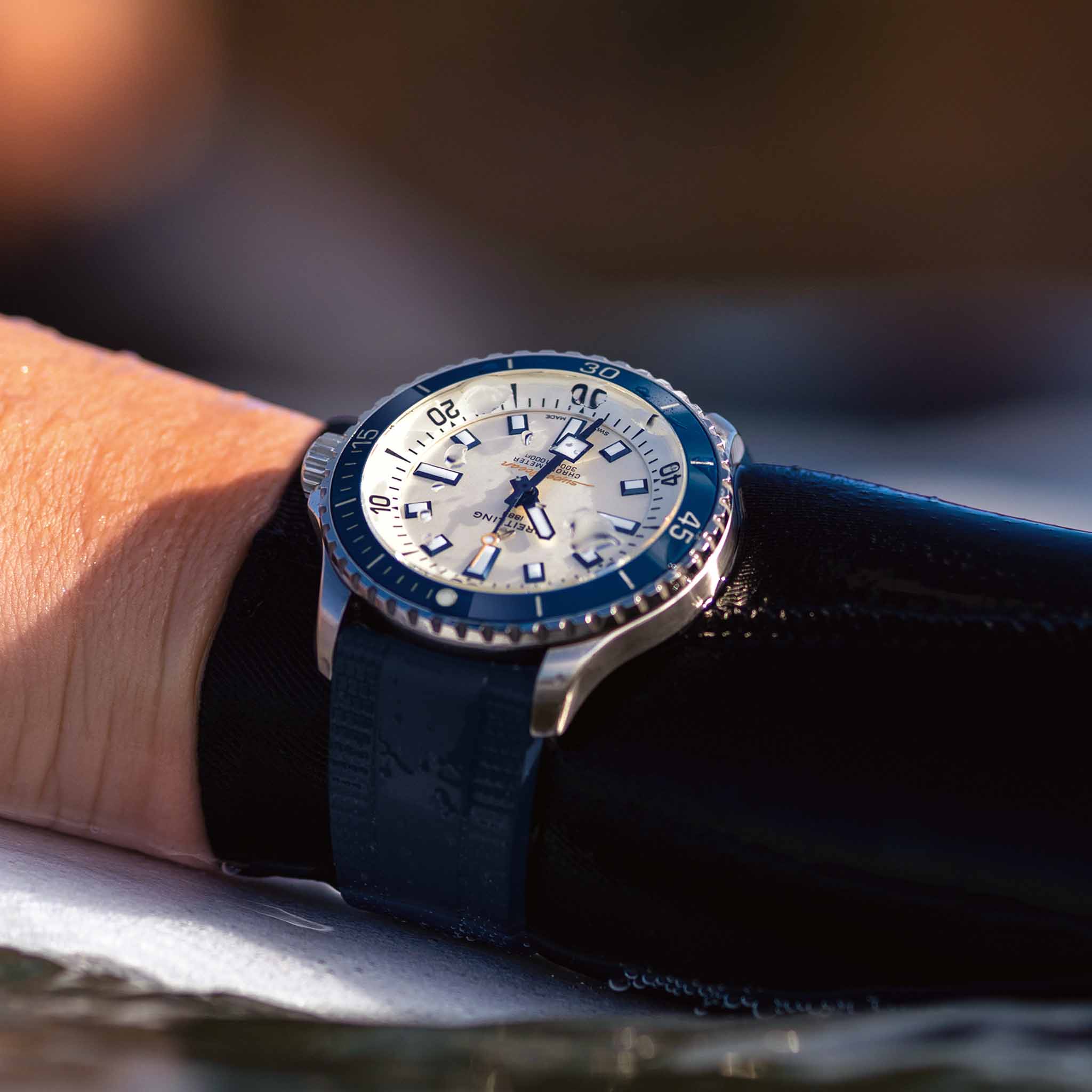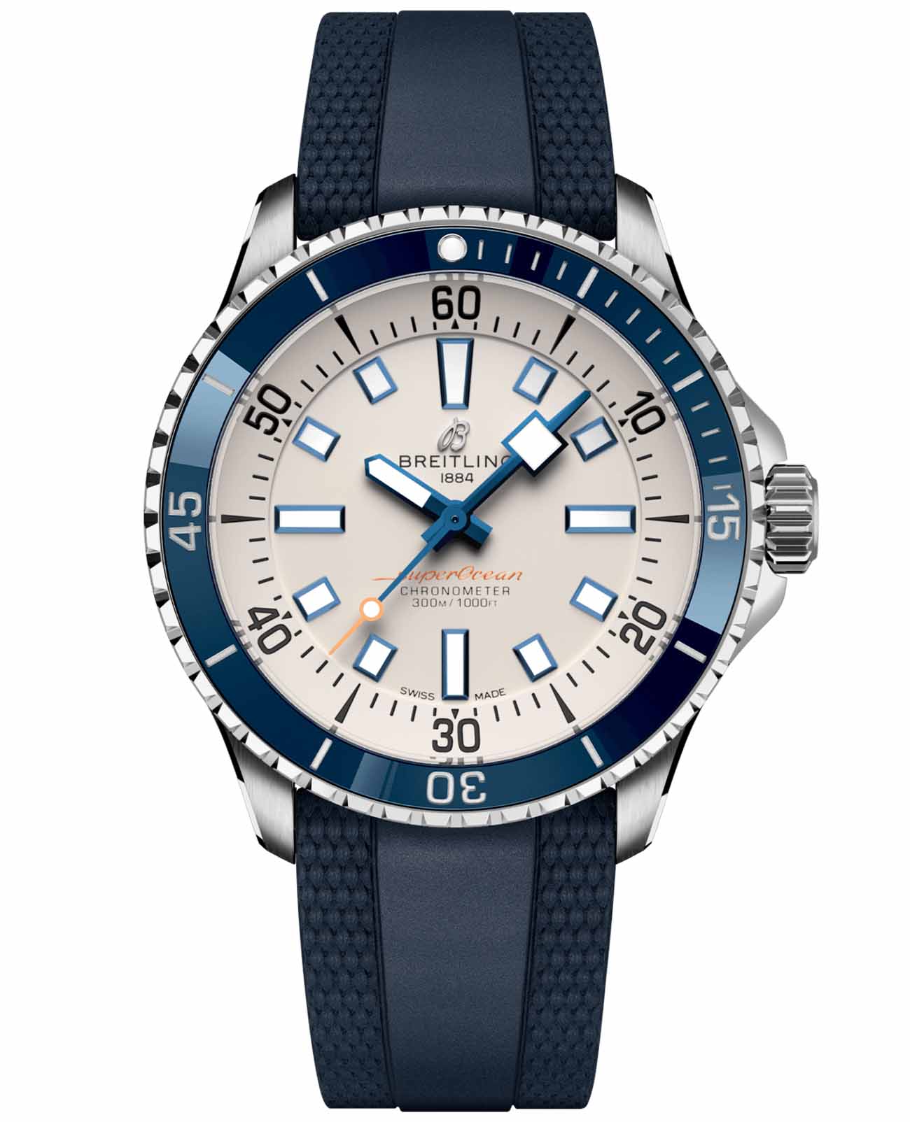 Мужские водонепроницаемые швейцарские часы Breitling Superocean Automatic 42 A17375E71G1S1, механический механизм (автоматический калибр) с высокой точностью. Сапфировое стеклоСапфировое стеклоПрочный и надёжный материал из кристалла сапфира синтетического происхождения, характеризующийся особой твёрдостью и устойчивостью к царапинам и повреждениям. устойчивое к появлению царапин, обладающее высокой прозрачностью. Класс водозащиты: 300 метров, позволит плавать, нырять и заниматься другими водными видами спорта. Корпус часов изготовлен из стали. Силиконовый ремешок с раскладной застёжкойРаскладная застёжкаТакой тип застёжки используется только на браслетах из металла. Она никогда не раскрывается полностью, происходит разделение на 2 и более частей. Раскладывающая застёжка снизит вероятность потери часов к минимуму.. Стрелки и метки с люминесцентным покрытиемЛюминесцентное покрытиеПозволяет считывать показания времени в темноте. Производители наносят на стрелки, часовые индексы, безель или поверхность циферблата светонакопительный состав, дающий холодное свечение.. Широкие стрелки и индексы с люминесцентным покрытиемЛюминесцентное покрытиеПозволяет считывать показания времени в темноте. Производители наносят на стрелки, часовые индексы, безель или поверхность циферблата светонакопительный состав, дающий холодное свечение. обеспечивают легкую читаемость под водой. Вращающийся стальной безельБезельВнешний ободок, закрепляющий стекло. В спортивных часах так называется поворотное кольцо с делениями на циферблате, выполняет роль таймера – замеряет отрезки времени на шкале. Неподвижный безель – элемент декора. Однонаправленно вращающийся безель на дайверских часах позволяет фиксировать моменты погружения и выныривания на поверхность. с люминесцентным покрытиемЛюминесцентное покрытиеПозволяет считывать показания времени в темноте. Производители наносят на стрелки, часовые индексы, безель или поверхность циферблата светонакопительный состав, дающий холодное свечение. Superluminova из нержавеющей стали и керамики, защищенный от царапин, никогда не изнашивается и не выцветает.