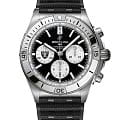 Мужские швейцарские часы-хронограф с секундомером Breitling B01 42 NFL Las Vegas Raiders Edition AB01342B1B1S1, механический механизм (автоматический калибр) с высокой точностью. Сапфировое стеклоСапфировое стеклоПрочный и надёжный материал из кристалла сапфира синтетического происхождения, характеризующийся особой твёрдостью и устойчивостью к царапинам и повреждениям. устойчивое к появлению царапин, обладающее высокой прозрачностью. Класс водозащиты: 200 метров, позволит плавать, нырять и заниматься другими водными видами спорта. Корпус часов изготовлен из нержавеющей стали. Браслет из каучука на раскладной застёжкеРаскладная застёжкаТакой тип застёжки используется только на браслетах из металла. Она никогда не раскрывается полностью, происходит разделение на 2 и более частей. Раскладывающая застёжка снизит вероятность потери часов к минимуму.. Стрелки и метки с люминесцентным покрытиемЛюминесцентное покрытиеПозволяет считывать показания времени в темноте. Производители наносят на стрелки, часовые индексы, безель или поверхность циферблата светонакопительный состав, дающий холодное свечение.. Шкала тахиметра на циферблате. Окошко даты находится в положении 6 часов.