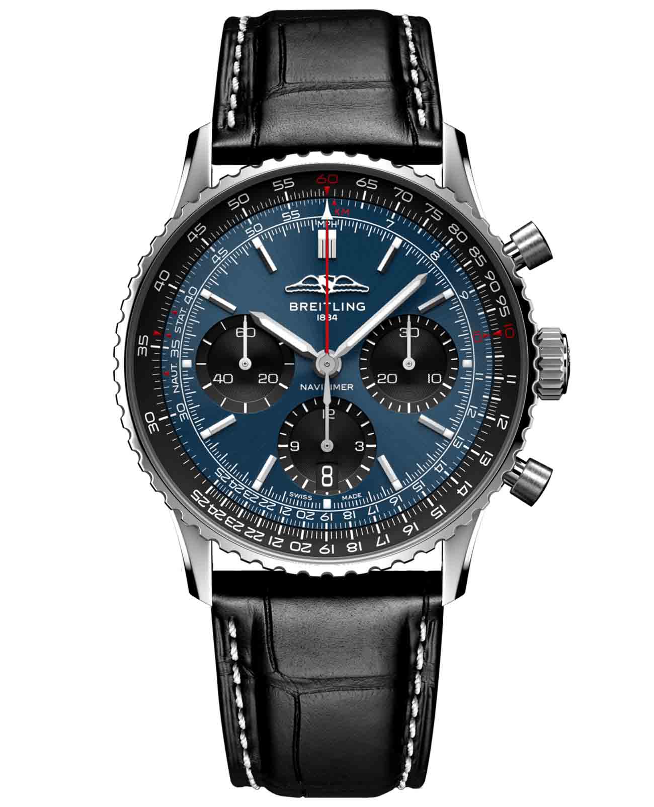 Мужские швейцарские часы-хронографХронографФункция позволяет измерять отрезки времени с особой точностью: часы, минуты, секунды. Верным признаком хронографа является наличие на циферблате 3 дополнительных окошек-счётчиков. с секундомеромСекундомерСекундоме́р — прибор, способный измерять интервалы времени с точностью до долей секунды. Breitling Navitimer B01 Chronograph 41 AB0139241C1P1, механический механизм (автоматический калибр) с высокой точностью. С момента своего дебюта 70 лет назад icon от Breitling претерпел множество модификаций, но этот новый Navitimer отражает его самые классические функции, дополняя их современными усовершенствованиями. Сплющенная логарифмическая линейка и выпуклый кристалл создают иллюзию более изящного профиля. Сапфировое стеклоСапфировое стеклоПрочный и надёжный материал из кристалла сапфира синтетического происхождения, характеризующийся особой твёрдостью и устойчивостью к царапинам и повреждениям. устойчивое к появлению царапин, обладающее высокой прозрачностью. Класс водозащиты: 30 метров, позволит защитить корпус от случайных брызг или капель дождя. Корпус часов изготовлен из стали. Чередующиеся полированные и матовые металлические элементы создают блестящую, но в то же время сдержанную отделку. Кожаный ремешок с раскладной застёжкойРаскладная застёжкаТакой тип застёжки используется только на браслетах из металла. Она никогда не раскрывается полностью, происходит разделение на 2 и более частей. Раскладывающая застёжка снизит вероятность потери часов к минимуму.. Шкала тахиметраТахиметрРазмеченная шкала, располагается на ободке или безеле часов. Тахиметр позволяет рассчитать скорость на определённом участке пути, расстояние измеряется в километрах или милях. на циферблате. Часы имеют сертификат COSCСертификат COSCОфициальный сертификат, подтверждающий то, что часы ходят с особо высокой точностью. Для получения документа часы подвергаются тестовым испытаниям, разработанным швейцарским институтом тестирования хронометров COSC. Допустимая норма для механических часов -4/+6 секунд в день, для кварцевых моделей +/- 0,07 секунд в день.. Окошко даты находится в положении 6 часов. Стрелки и метки с люминесцентным покрытиемЛюминесцентное покрытиеПозволяет считывать показания времени в темноте. Производители наносят на стрелки, часовые индексы, безель или поверхность циферблата светонакопительный состав, дающий холодное свечение.. И если есть одно обновление, которое наверняка вызовет ностальгию, так это возвращение крыльев AOPA в исходное положение на 12 часов. Вот уже 70 лет оригинальные часы Breitling pilot в равной степени нравятся как авиаторам, так и ценителям вкуса. Это самые культовые часы Breitling, которые носят астронавты в космосе и крупнейшие звезды на земле, и одни из самых узнаваемых часов всех времен.