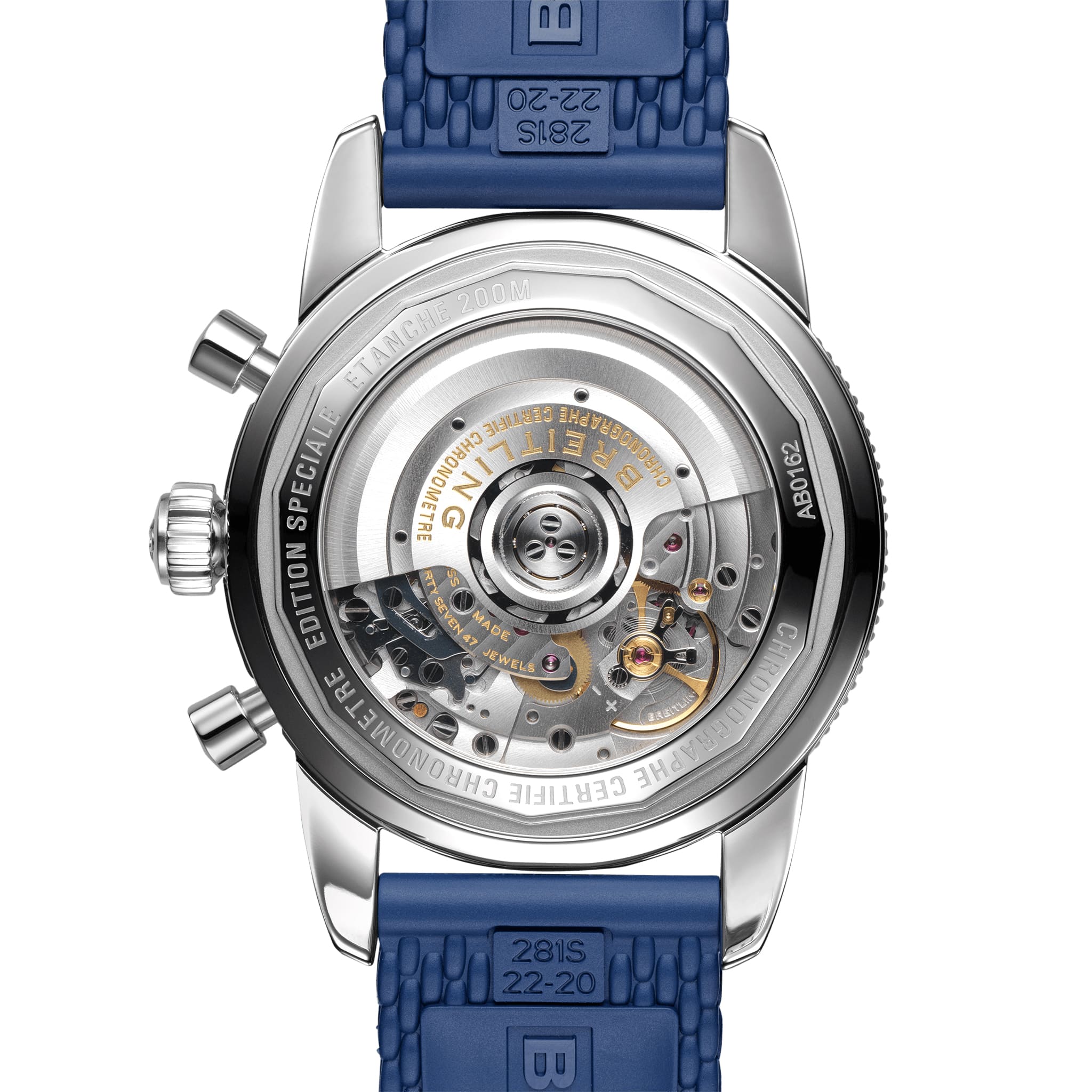 Покупатель может выбрать одну из понравившихся ему версий с циферблатом черного, синего, серебристого или зеленого цвета. Модель предлагается в комплекте с плетеным браслетом или каучуковым ремешком с узором в виде плетения с раскладной застежкой. Внутри корпуса спрятан калибр собственной разработки Breitling Manufacture Caliber 01, сертифицированный Швейцарским институтом официального тестирования хронометров (COSC).