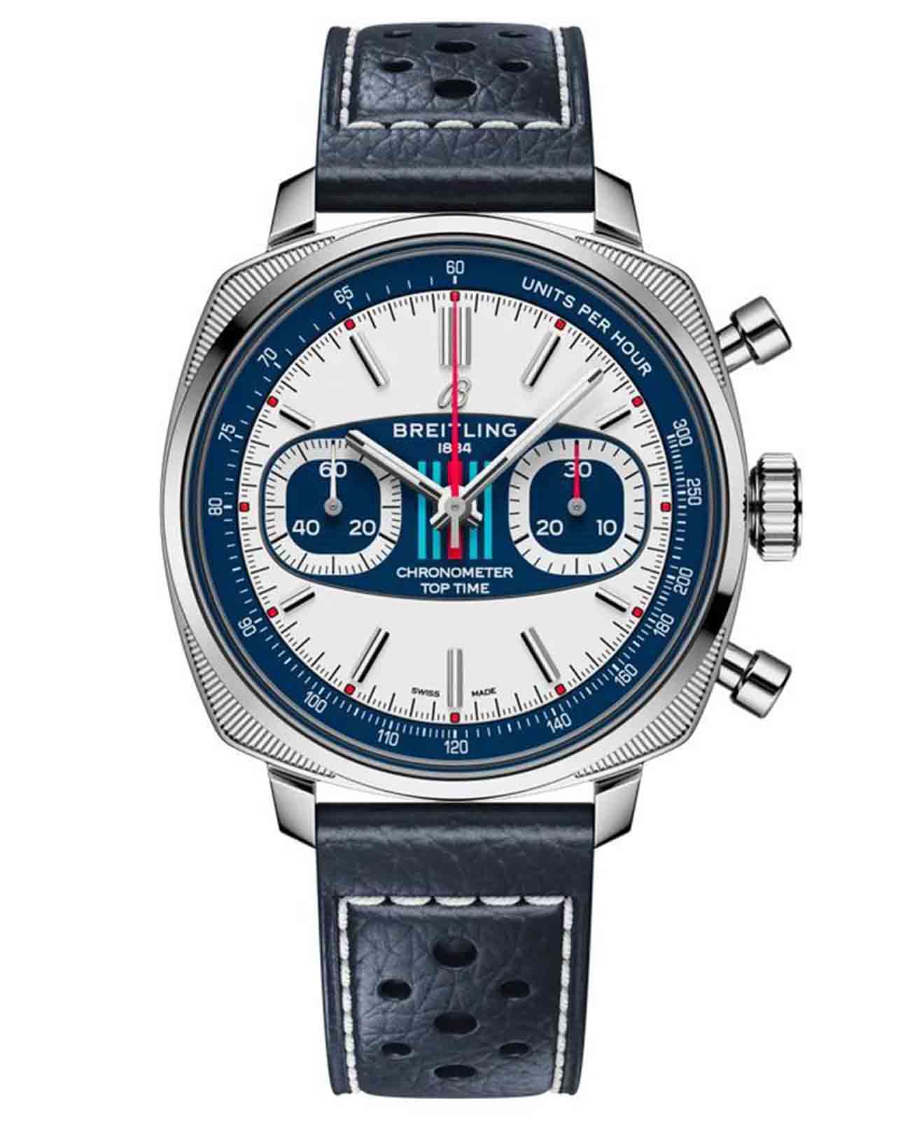 Breitling Top Time B31 AB01772A1G1X1 — стильная новинка 2025 года с характерной винтажной эстетикой и современным механизмом собственного производства. Корпус диаметром 38 мм выполнен из нержавеющей стали с полированной отделкой. Циферблат защищён выпуклым сапфировым стекломСапфировое стеклоПрочный и надёжный материал из кристалла сапфира синтетического происхождения, характеризующийся особой твёрдостью и устойчивостью к царапинам и повреждениям. с двухсторонним антибликовым покрытиемАнтибликовое покрытиеСлой оксида металла в 0,13-0,3 микрон, благодаря которому стекло часов не бликует и не отражает свет. Антибликовое покрытие уменьшает отражение света в 10 раз, обеспечивая отличную читаемость показателей циферблата.. Циферблат с контрастным внутренним кольцом и яркой оранжевой секундной стрелкой оформлен в узнаваемом стиле коллекции Top Time. Стрелки и часовые метки имеют люминесцентное покрытиеЛюминесцентное покрытиеПозволяет считывать показания времени в темноте. Производители наносят на стрелки, часовые индексы, безель или поверхность циферблата светонакопительный состав, дающий холодное свечение., обеспечивающее отличную читаемость. Внутри установлен автоматический калибр Breitling B31, отображающий часы, минуты, малую секунду и дату. Механизм обеспечивает запас хода до 78 часов и работает с частотой 28 800 полуколебаний в час. Часы укомплектованы перфорированным кожаным ремешком и классической застёжкой-пряжкой. Водонепроницаемость 100 метров делает модель универсальной для повседневного использования. Top Time B31 AB01772A1G1X1 — гармония винтажного дизайна и инновационного часового мастерства.
