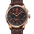Модель Bentley Centenary Limited Edition в корпусе из 18-каратного розового золота дополнена коричневым ремешком из телячьей кожи с ромбовидным узором и отстрочкой, которые напоминают роскошные сидения Bentley. На основном циферблате расположены дополнительные циферблаты, выполненные в контрастном черном цвете, а также черный внутренний безель с белой тахиметрической шкалой и надписью TACHYMETER красного цвета. На левой стороне корпуса диаметром 42 мм располагается гравировка логотипа Bentley, дизайн которой напоминает приборную панель автомобиля Bentley Blower. Под корпусом из 18-каратного розового золота скрыт мануфактурный механизм Breitling Manufacture Caliber 01 – один из самых надежных калибров в часовой индустрии. За его работой можно наблюдать сквозь уникальную прозрачную заднюю крышку корпуса, украшенную логотипом Bentley. На задней крышке часов выгравирована надпись 1 OF 200.