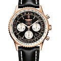 Мужские швейцарские часы-хронографХронографФункция позволяет измерять отрезки времени с особой точностью: часы, минуты, секунды. Верным признаком хронографа является наличие на циферблате 3 дополнительных окошек-счётчиков. с секундомеромСекундомерСекундоме́р — прибор, способный измерять интервалы времени с точностью до долей секунды. Breitling Navitimer 01 Chronograph 43 RB012012-BA49-743P, механический механизм (автоматический калибр) с высокой точностью. Сапфировое стеклоСапфировое стеклоПрочный и надёжный материал из кристалла сапфира синтетического происхождения, характеризующийся особой твёрдостью и устойчивостью к царапинам и повреждениям. с антибликовым покрытием устойчивое к появлению царапин, обладающее высокой прозрачностью. Класс водозащиты: 30 метров, позволит защитить корпус от случайных брызг или капель дождя. Корпус часов изготовлен из стали с 18-каратным золотом18-каратное золотоОбозначение по каратной системе пробирования, оно показывает, сколько драгоценного металла содержится в изделии. 18 карат - в составе 75% чистого золота, соответствует 750 пробе.