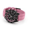 Класс водозащиты: 100 метров, позволит плавать, нырять и заниматься другими водными видами спорта. Шкала пульсометра вокруг циферблата розового цвета.