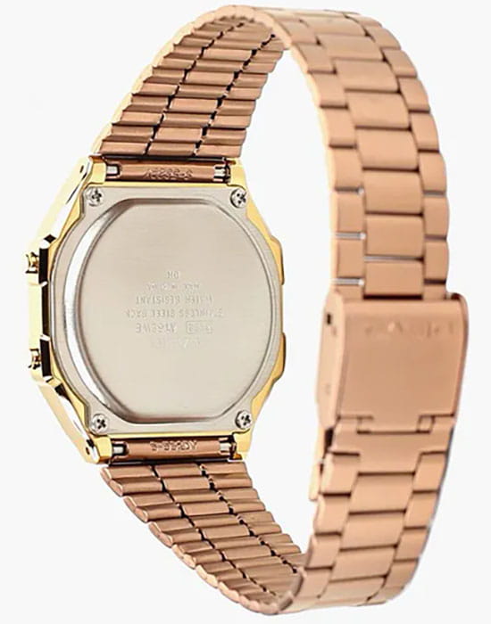 Корпус в цвете розового золота из прочного полимерного пластика имеет легендарную 8-угольную форму, компактный аксессуар одинаково хорошо смотрится как с офисной рубашкой, так и с повседневной футболкой. Электронный дисплей имеет подсветку, его надёжную защиту от повреждений обеспечивает минеральное стекло. Браслет из нержавеющей стали 316L на долгие годы сохранит первоначальный вид. Будильник, автоматический календарь. Габариты: 38,6 x 36,3 x 9,6 мм.