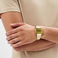 Корпус в золотистом цвете из прочного полимерного пластика имеет легендарную 8-угольную форму, компактный аксессуар одинаково хорошо смотрится как с офисной рубашкой, так и с повседневной футболкой. Электронный дисплей имеет подсветку, его надёжную защиту от повреждений обеспечивает минеральное стекло. Браслет из нержавеющей стали 316L на долгие годы сохранит первоначальный вид. Будильник, автоматический календарь. Габариты: 38,6 x 36,3 x 9,6 мм.