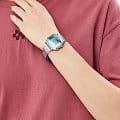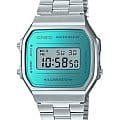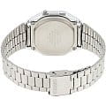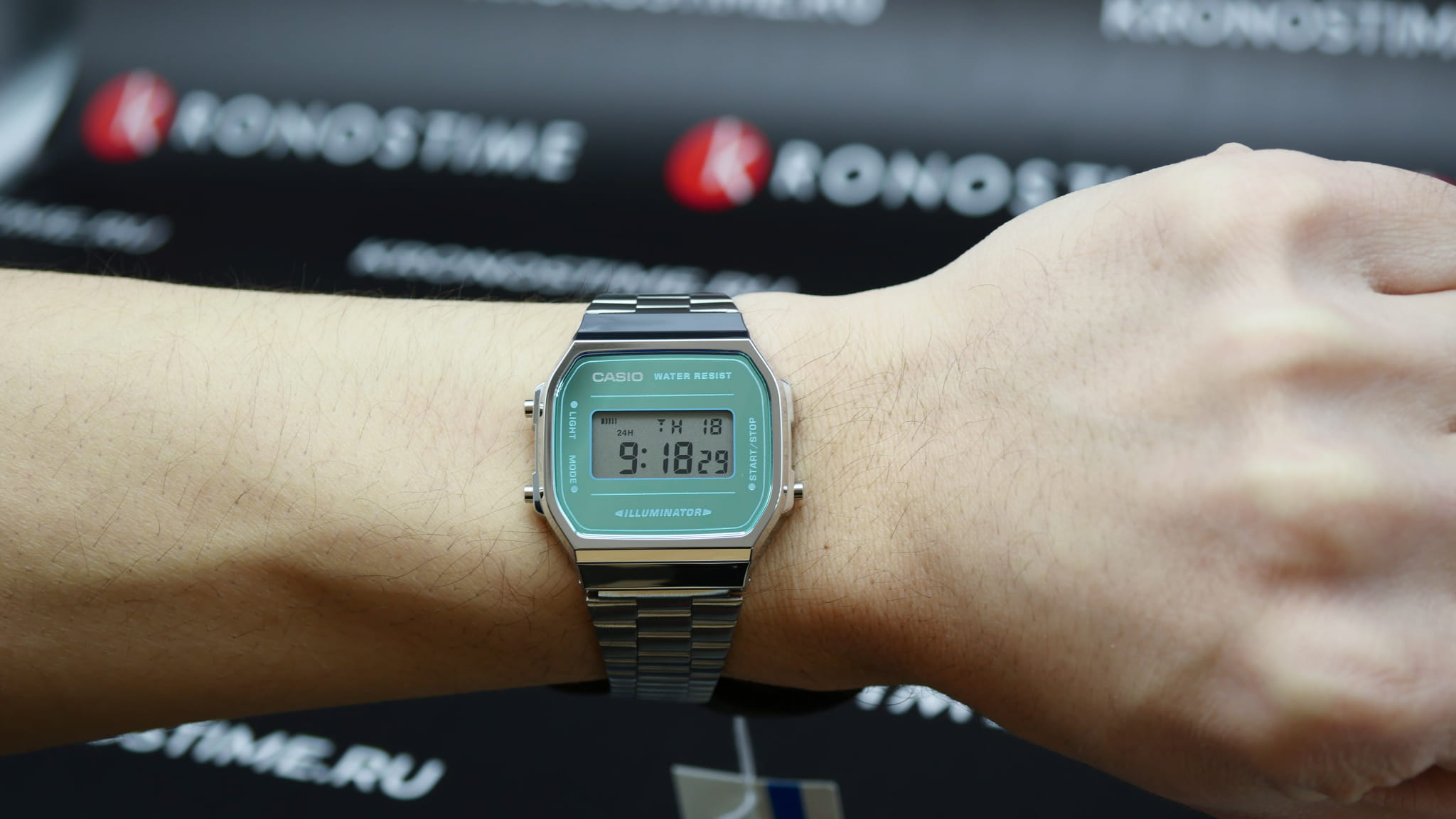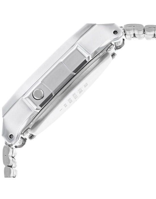 Серебристая цветовая гамма подойдёт к любой одежде, предоставляя простор для экспериментов. Цифровой дисплей в голубом цвете оснащён функцией подсветки, облегчающей считывание информации в темноте. Среди дополнительных возможностей числятся будильник, календарь, секундомер. Ударопрочный корпус сделан из полимерного пластика. Минеральное стекло отличается устойчивостью к появлению царапин. Габариты: 38,6 x 36,3 x 9,6 мм.