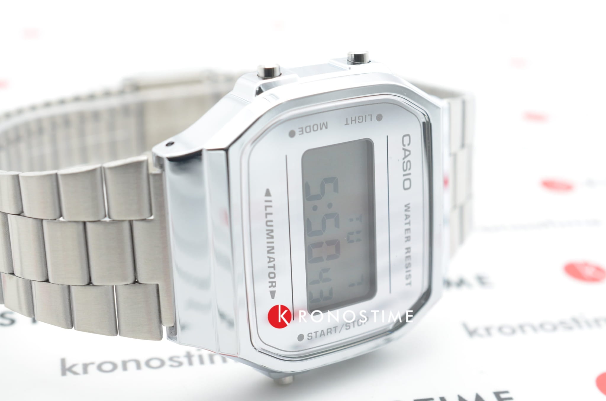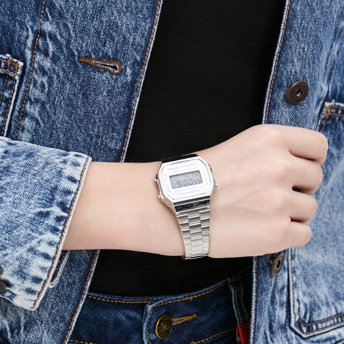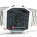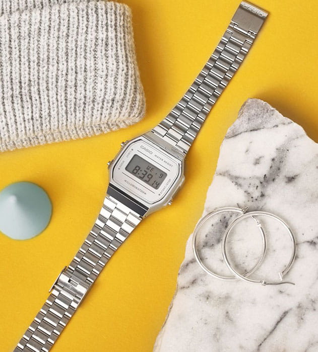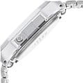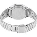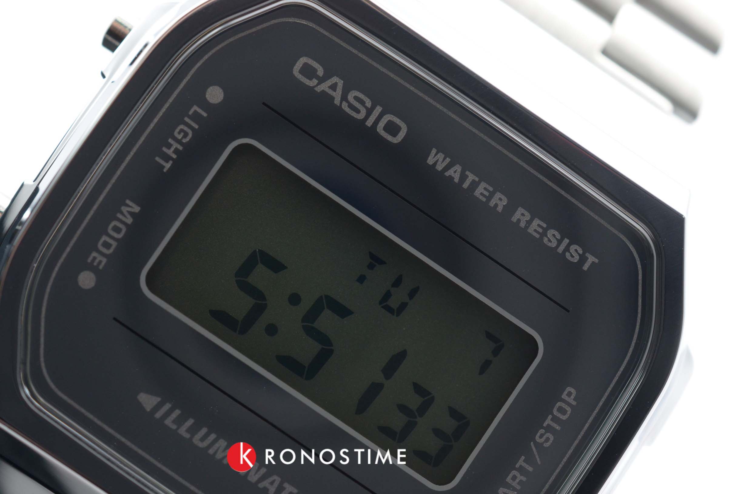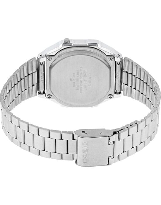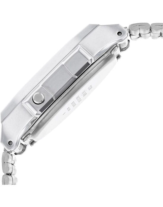 Серебристая цветовая гамма подойдёт к любой одежде, предоставляя простор для экспериментов. Цифровой дисплей оснащён функцией подсветки, облегчающей считывание информации в темноте. Среди дополнительных возможностей числятся будильник, календарь, секундомер. Ударопрочный корпус сделан из полимерного пластика. Минеральное стекло отличается устойчивостью к появлению царапин. Габариты: 38,6 x 36,3 x 9,6 мм.