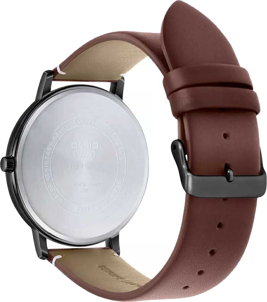 Японские мужские наручные часы Casio Collection MTP-B105BL-1A с минеральным стекломМинеральное стеклоМинеральное стекло представляет собой искусственно выращенный минерал кварца. Такое стекло отличается особой устойчивостью к повреждениям и царапинам. Уступает по некоторым качествам сапфировому стеклу., кварцевый механизм с высокой точностью. Класс водозащиты: 50 метров, позволит защитить корпус от случайных брызг или капель дождя. Корпус часов изготовлен из стали с IP-покрытиемIP-покрытиеМетод ионного напыления. Демонстрирует повышенную устойчивость к истиранию, окислению и химическим веществам. Под воздействием высокого давления и температуры около 1500°C молекулы металла надёжно соединяются с частицами корпуса часов..Ремешок с классической застежкой. Указатель даты находится в положении 12 часов. Указатель дня недели находится в положении 6 часов. Батарея рассчитана на 3 года. Циферблат с метками в виде штрихов.