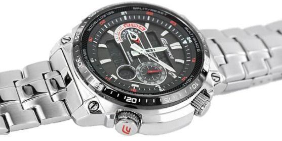 Светодиодная подсветка с автоподсветкой обеспечивает освещение всего циферблата, функция автоподсветки обеспечивает автоматическое включение подсветки. Питание от солнечной энергии, индикатор заряда батареи. Секундомер с точностью показаний 1/100с и временем измерения 24ч. Сплит-хронограф. Таймер обратного отсчета от 1мин до 60мин с автоповтором. Коррекция текущего времени радиосигналом на территории почти всей Европы, Китая, США и Японии. 12-ти и 24-х часовой формат времени. Мировое время. Водонепроницаемость 100м. Минеральное стекло устойчиво к царапинам. Корпус и браслет из нержавеющей стали.