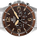 Кварцевый японский механизм Miyota. Точность хода не хуже -10 +15 сек./в месяц. Часы оснащены функцией хронографа, с точностью 1/10с и временем измерения 1ч. Циферблат коричневого цвета с контрастными элементами дизайна. Стрелки и индексы с светонакопительным нанесением. Корпус и браслет выполнены из нержавеющей стали. Безель с IP покрытием коричневого цвета. Минеральное стекло устойчиво к появлению царапин. Водонепроницаемость 100М. В часах можно плавать. Степень водонепроницаемости не является величиной, эквивалентной функциональной рабочей глубине.