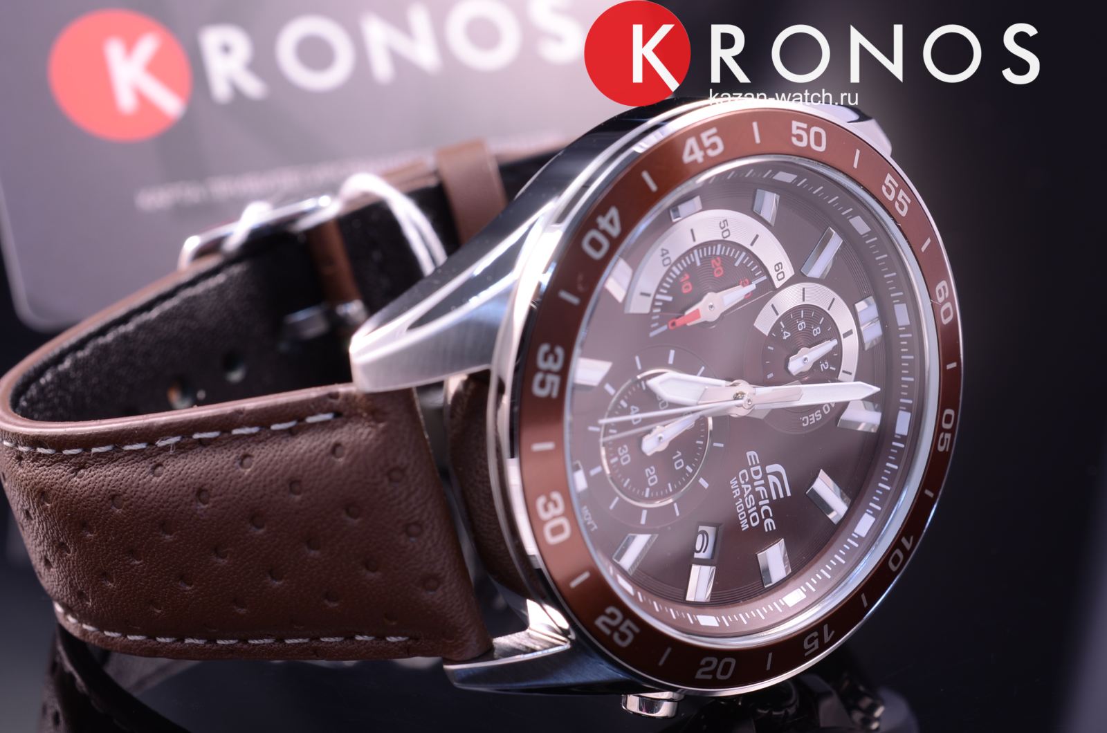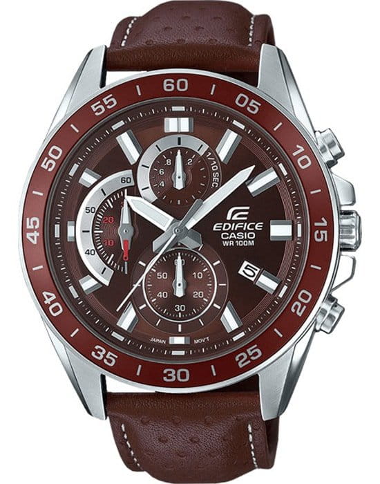 Компания Casio выпустила новинку Edifice — стильный хронограф из серии EFV-550. Окошки секундомера очень напоминают приборную доску автомобиля. В серии пять моделей разных цветов, причем две со стальным браслетом и три с кожаным ремешком. Текстура этого ремешка сделана “в горошек” и смотрится очень стильно. Часы водонепроницаемые, обладают секундомером, отображают дату.