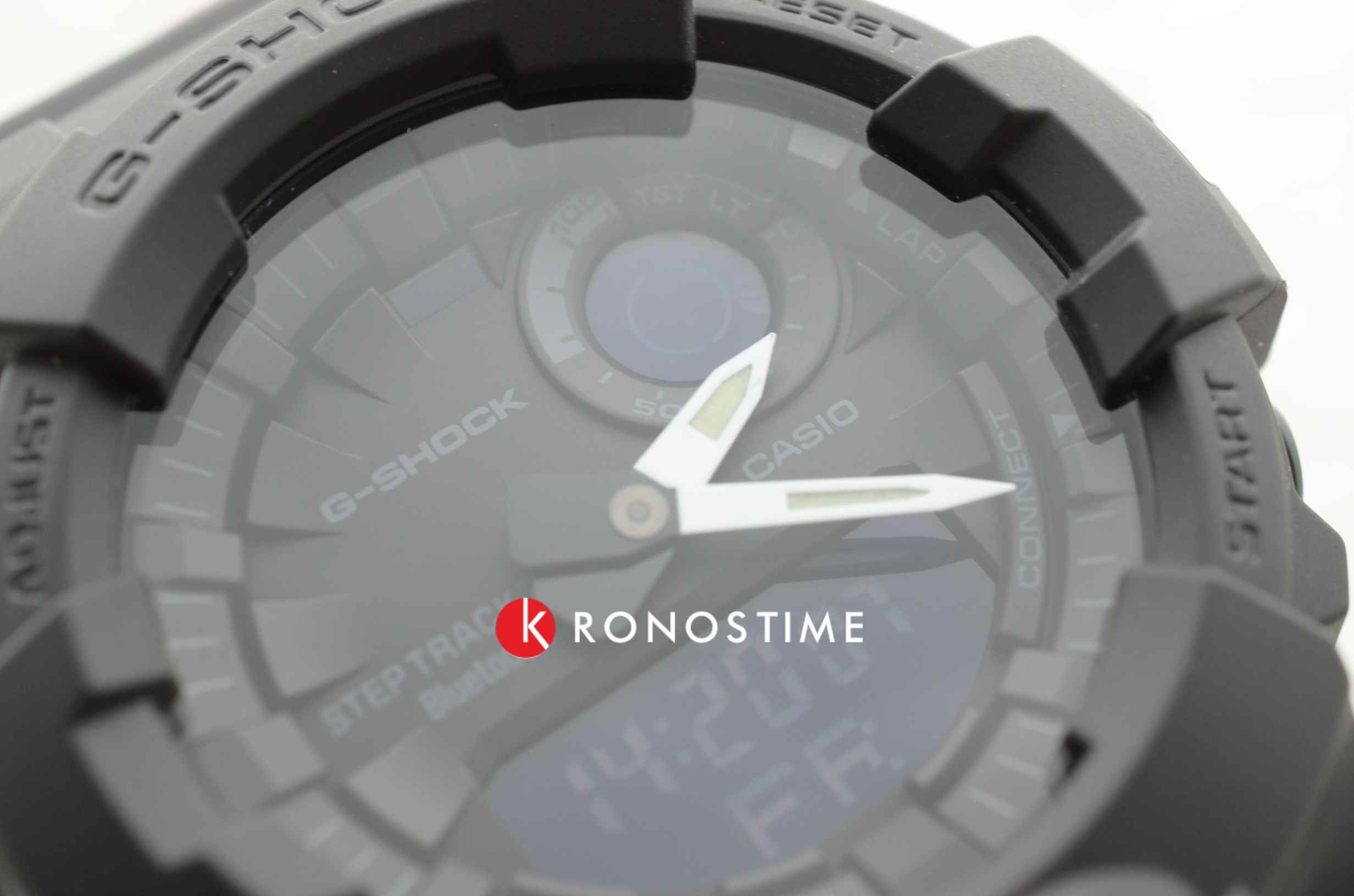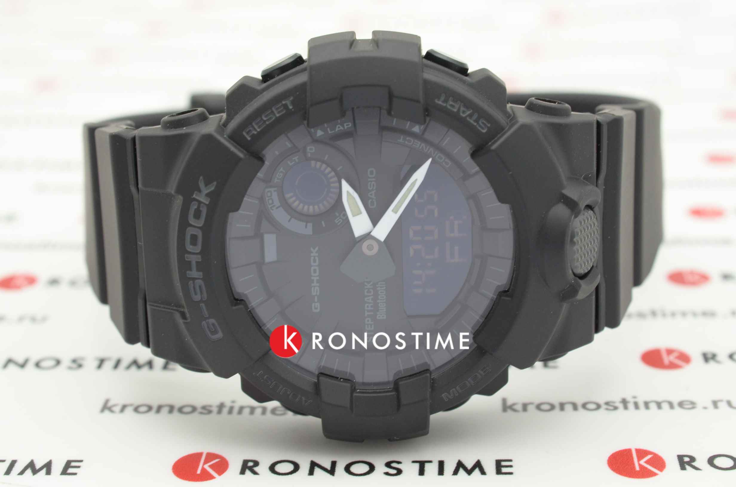 Часы в черном противоударном корпусеУдаропрочный корпусМеханизм заключён в корпус, выполненный из современных материалов, устойчивых к ударам, механическим повреждениям и падению с высоты: инновационный пластик, карбон, нержавеющая сталь, титан. и с минималистичным оформлением циферблата дополнят ваш образ динамичностью и брутальным характером. Модель не лишена функциональности, это первые часы G-Shock, оснащённые трекером активности. Также среди часовых усложнений BluetoothBluetoothСовременная технология, позволяющая синхронизировать часы с телефоном и переносить данные. Часы с Bluetooth расширяют возможности вашего смартфона и делают его использование ещё более удобным., таймер, секундомер, расчёт средней скорости пути, мировое времяМировое время Полезное часовое усложнение, отображающее время в основных городах и известных областях по всему миру, оно связано с часовыми поясами, удобно для путешественников и бизнесменов. , будильник, автоматический календарь. Срок службы батарейки - 2 года. Светодиодная подсветкаСветодиодная подсветкаСветодиодная или LED-подсветка обеспечивает появление яркого холодного свечения за счёт LED-элементов - маленьких лампочек. Они потребляют минимальное количество энергии, чаще всего можно встретить 1 светодиод, в нижней части циферблата. циферблата. Минеральное стекло. Корпус и браслет из полимерного материала. Водостойкость 20 бар. Габариты: 54,1 x 48,6 x 15,5 мм.